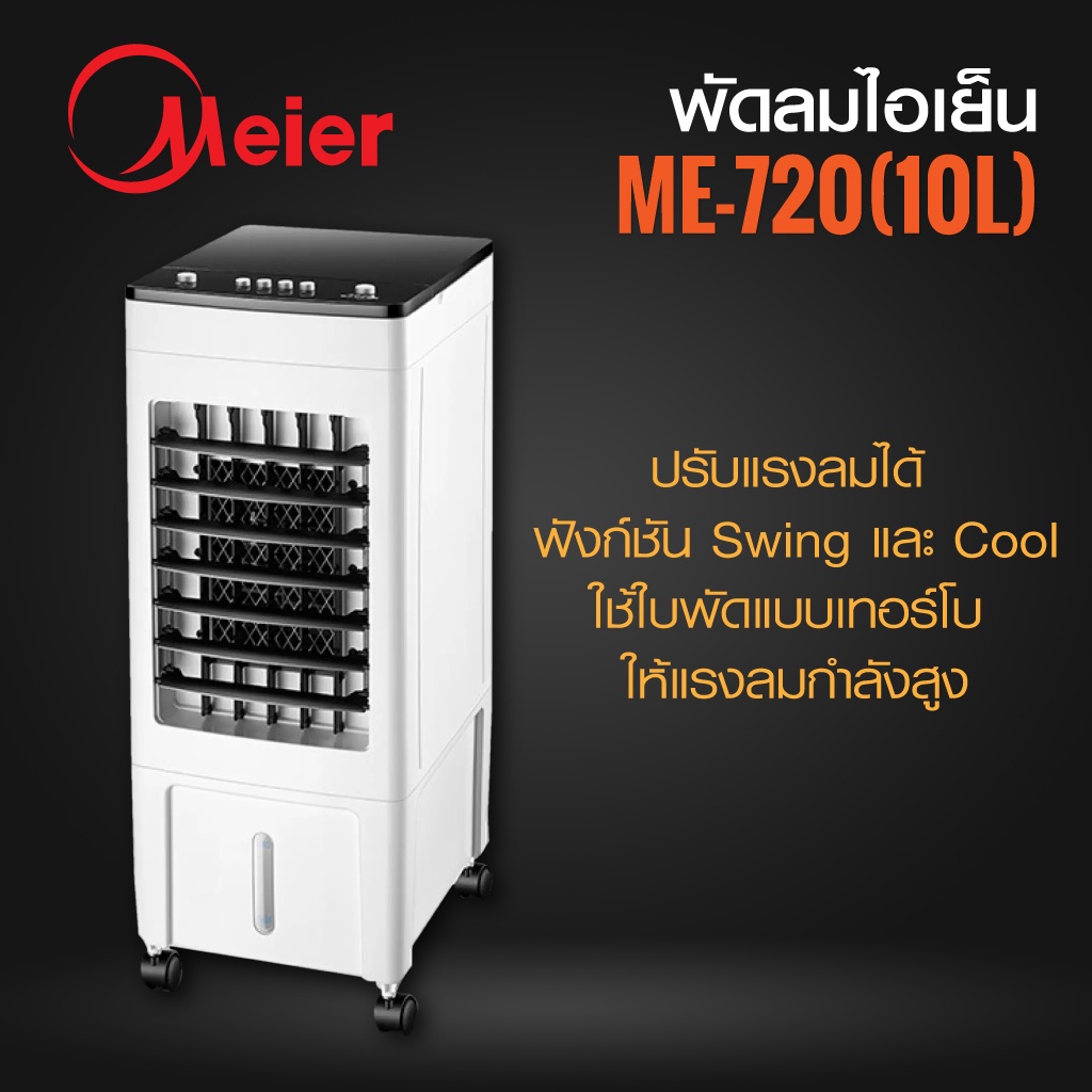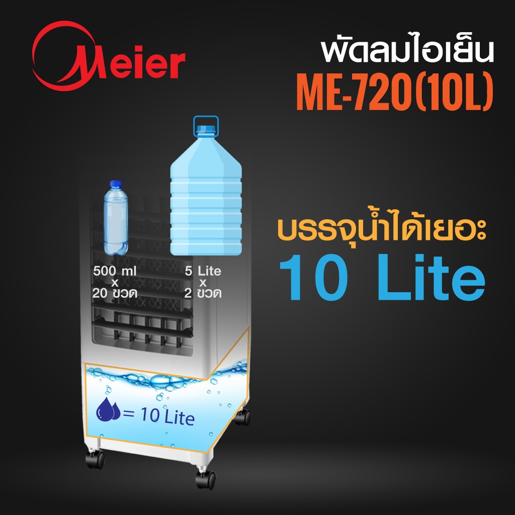 พัดลมไอน้ำ พัดลมไอเย็น Meier ขนาด 10L มาตรฐาน มอก. พร้อมเจลเย็น 2 ขวด คูลดาวน์อย่างรวดเร็ว เพิ่มความชื้นเงียบสุดๆ