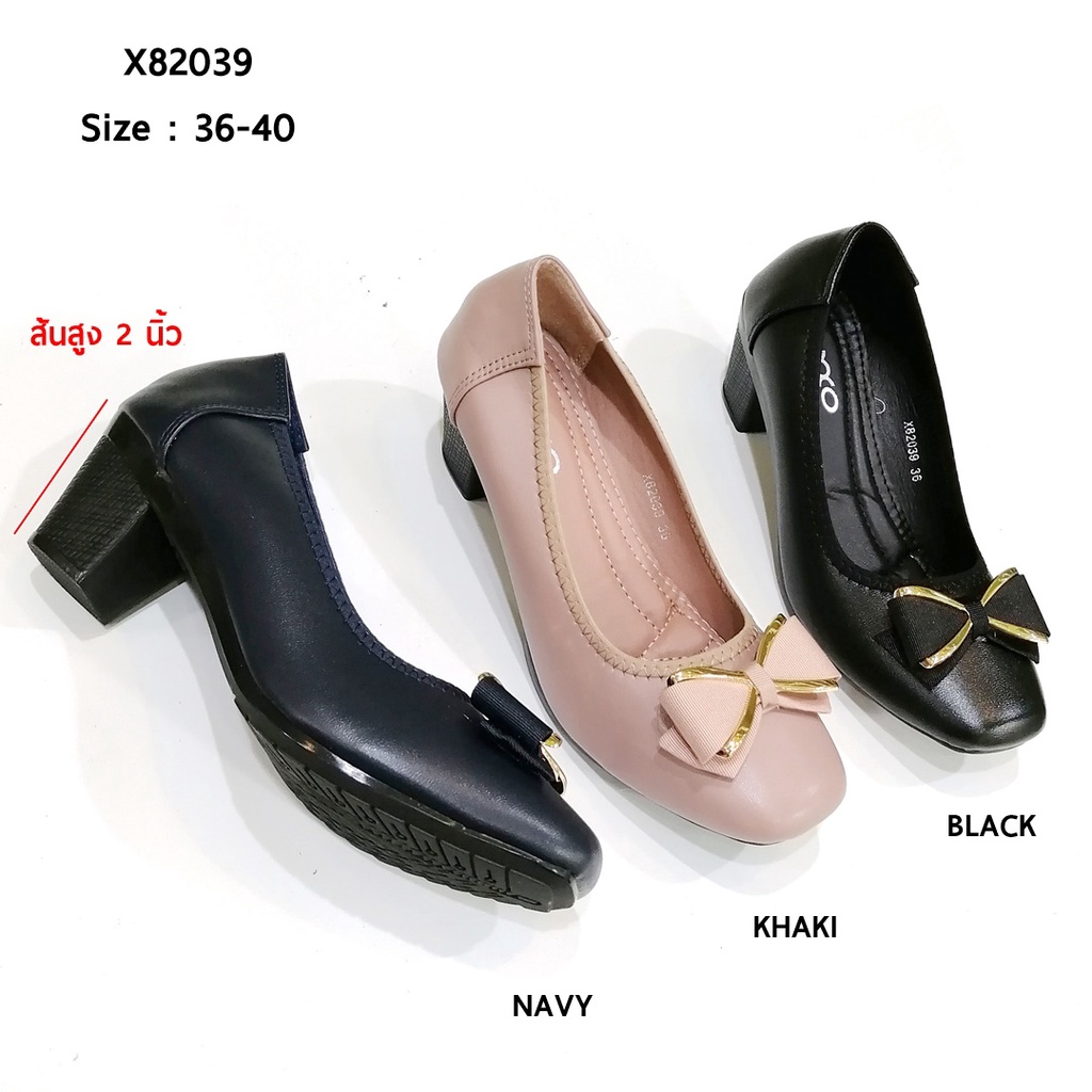 Prettycomfort รองเท้าคัทชู เล็กกว่าปกติ1ไซส์ เพื่อสุขภาพ แฟชั่น หญิง ส้นpuสูง2นิ้ว X82039