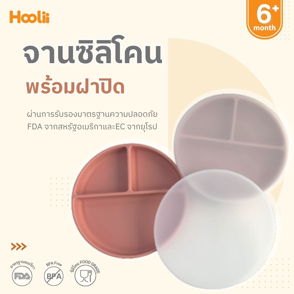 Hoolii จานซิลิโคน ฐานดูดสูญญากาศพร้อมฝาปิด