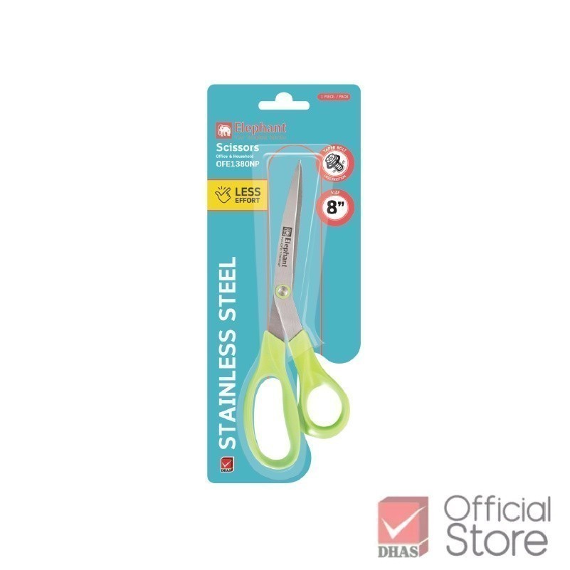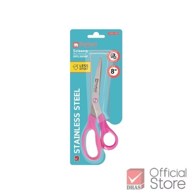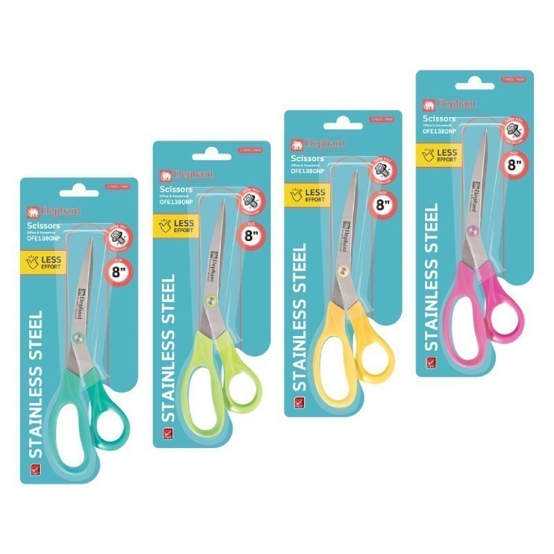 Elephant กรรไกร กรรไกรสแตนเลส Economy 8 นิ้ว รุ่น OFE 1380 Neon Pastel คละสี จำนวน 1 เล่ม