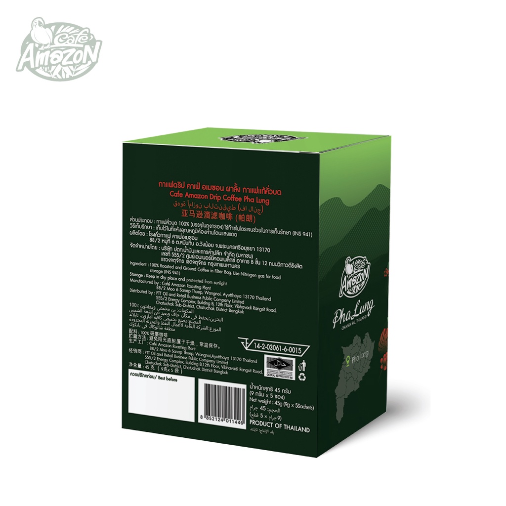 Café Amazon Drip Coffee กาแฟดริป คาเฟ่ อเมซอน (ผาลั้ง) 1 กล่อง บรรจุ 5 ซอง