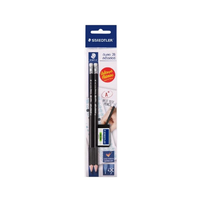 ดินสอไม้ทําข้อสอบ ดินสอ 2b ดินสอไม้ Staedtler (สเต็ดเลอร์) ดินสอ ชุดดินสอทำข้อสอบ #13212PB2 ดินสอ2B 2 แท่ง ยางลบ 1 ก้อน