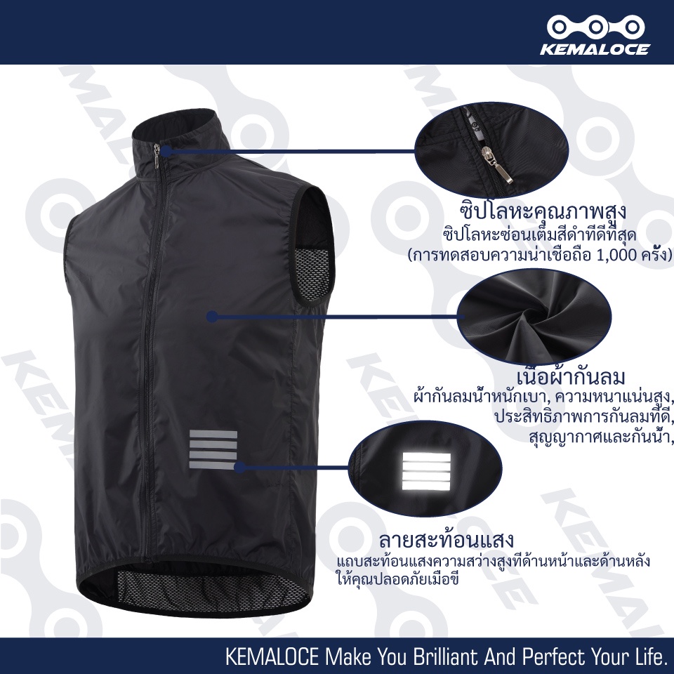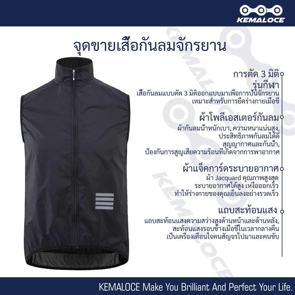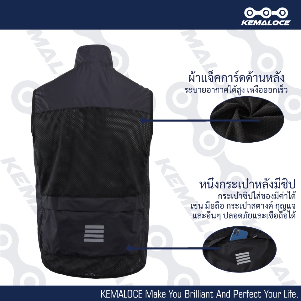 KEMALOCE เสื้อปั่นจักรยานกันลมสีกรมท่าผู้ชาย2024เสื้อกันลมจักรยานแขนกุดสีดำน้ำหนักเบากลางแจ้งฤดูร้อนเสื้อกันลมจักรยาน