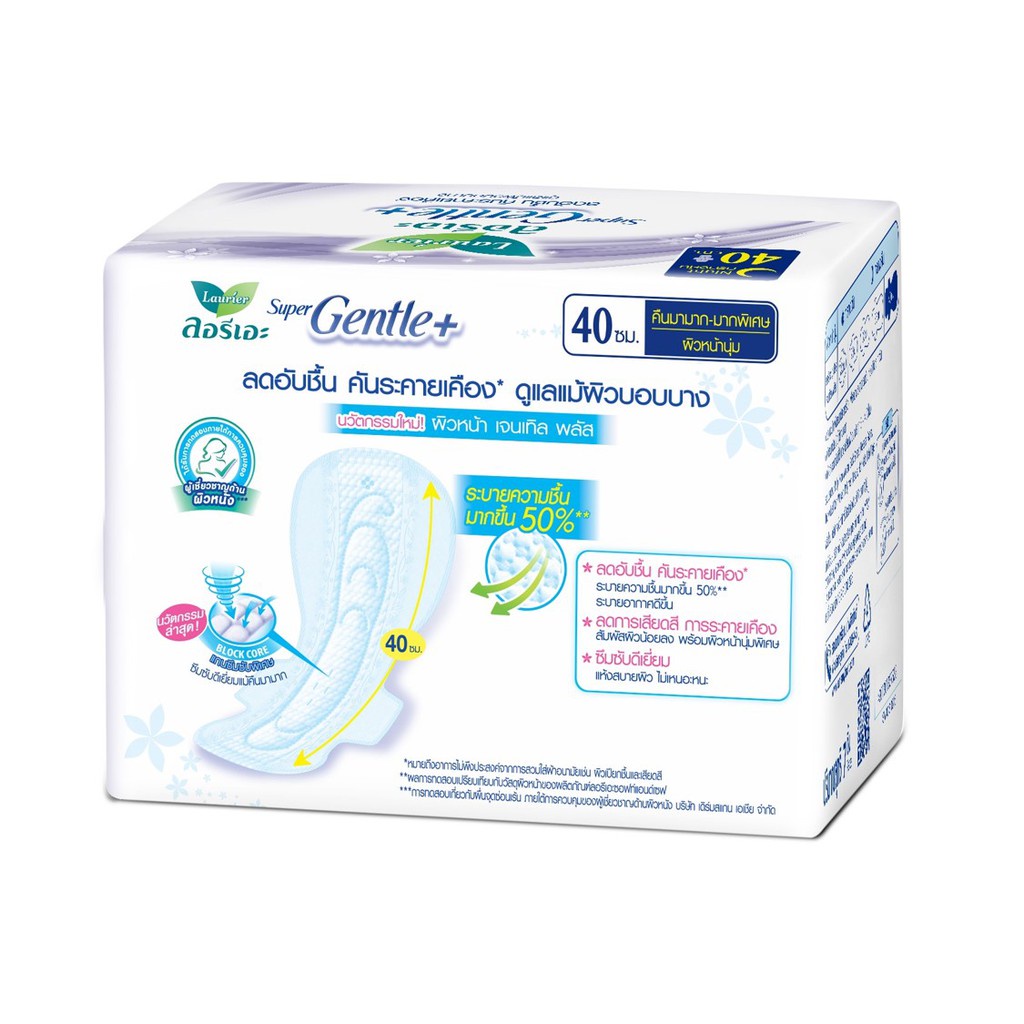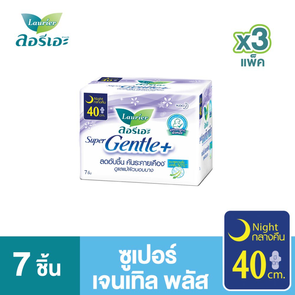 [แพ็ค3] ลอรีเอะ ซูเปอร์เจนเทิลพลัสกลางคืน40ซม.7ชิ้น Laurier SuperGentle+ 40cm.7pcs ผ้าอนามัย,ผิวแพ้ง่าย