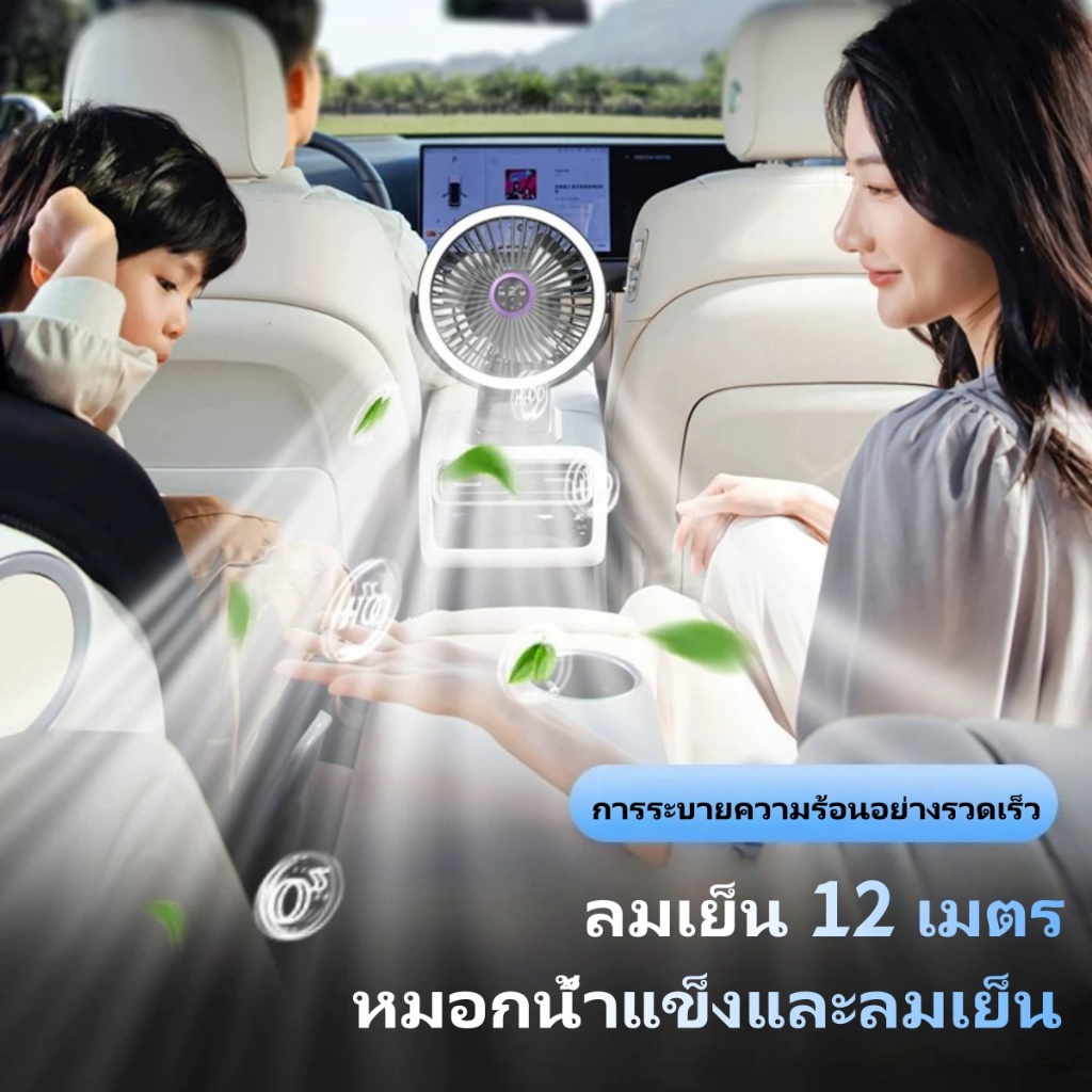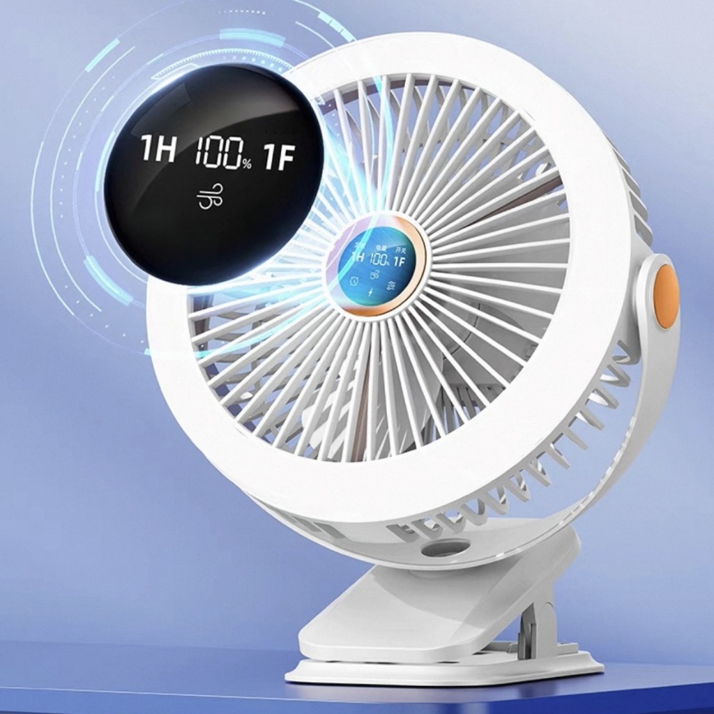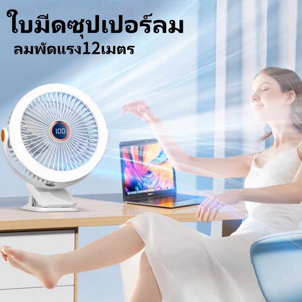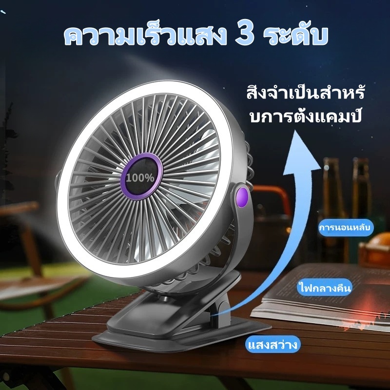 พัดลมไฟกลางคืนขนาด8นิ้ว720° พัดลมคลิป10000mAhพัดลมเพดาน USB ลมแรง5เกียร์