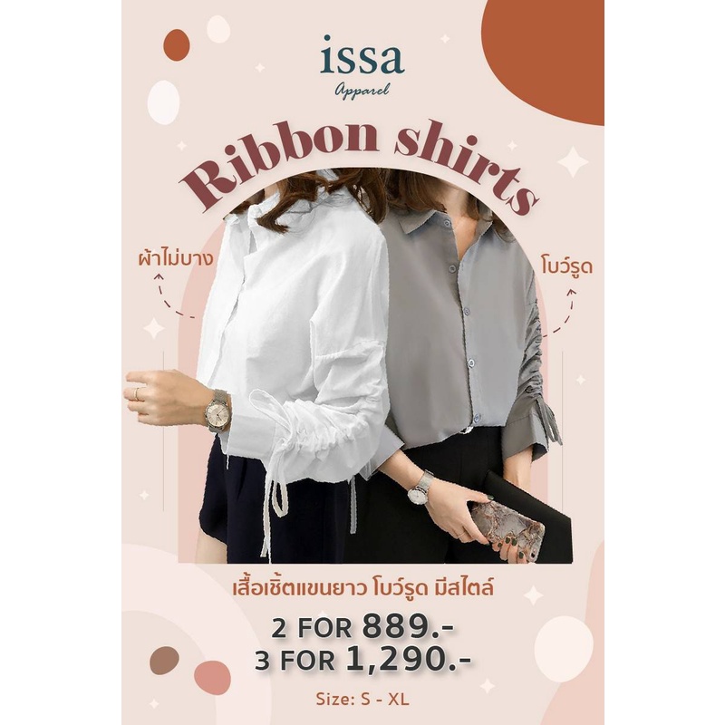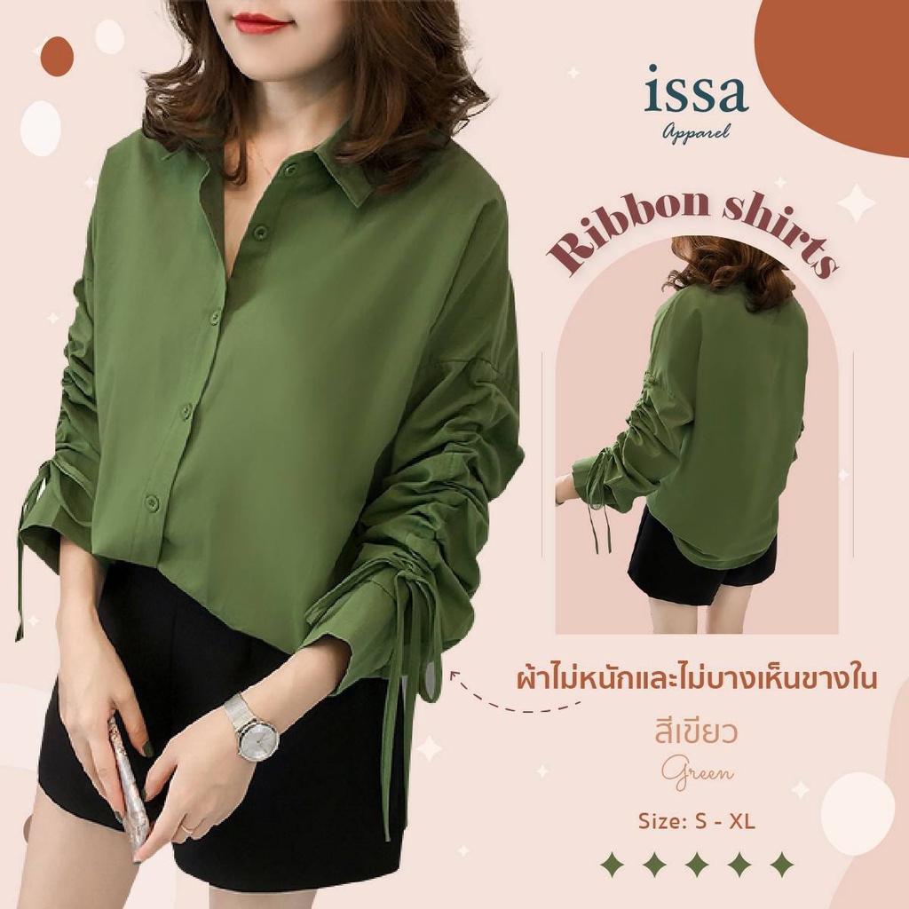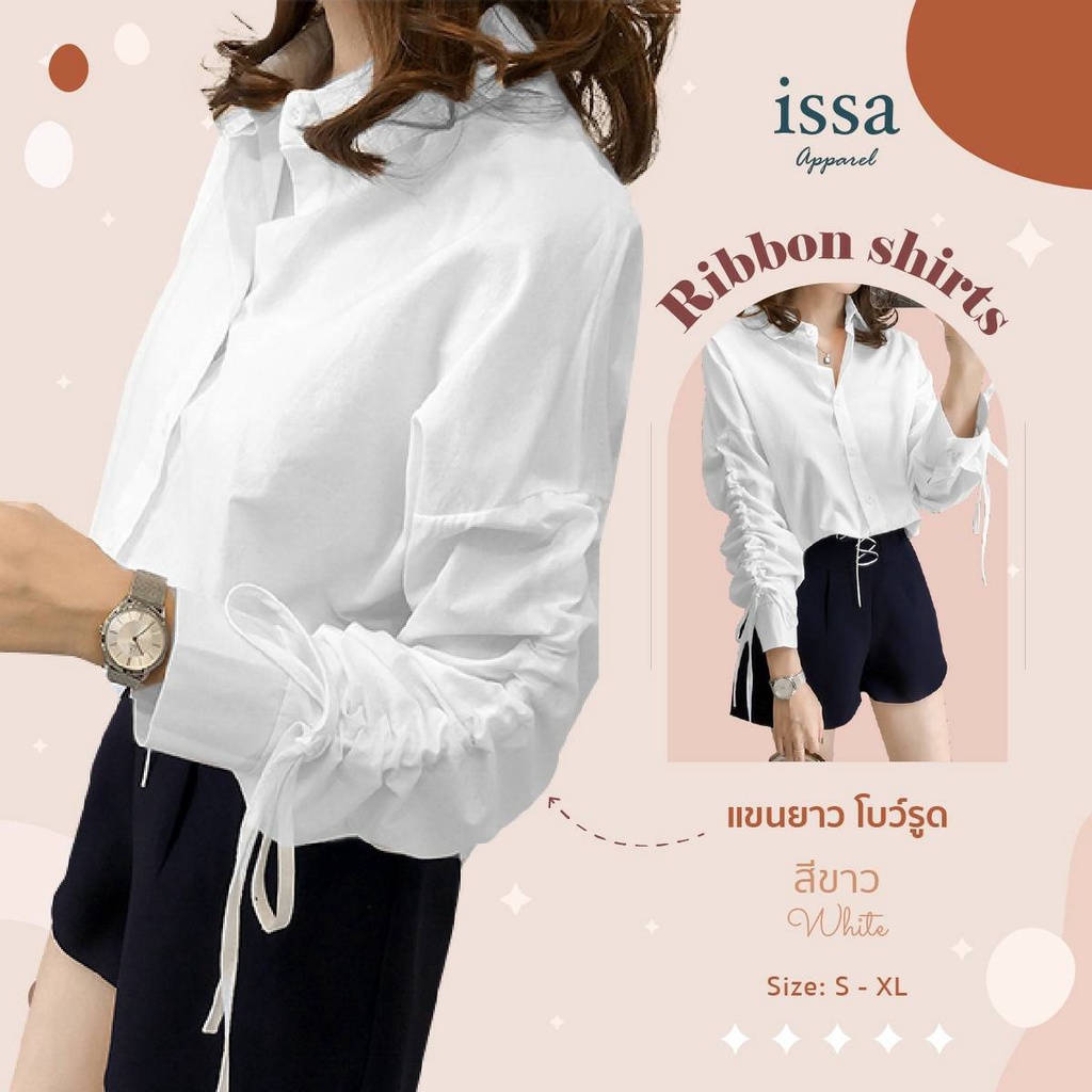 เสื้อเชิ้ตแขนรูด Ribbon Shirt ส่งด่วน+ส่งฟรี by Issa Apparel เสื้อเชิ้ตใส่ทำงาน ใส่เที่ยวเสื้อเชิ้ตแขน