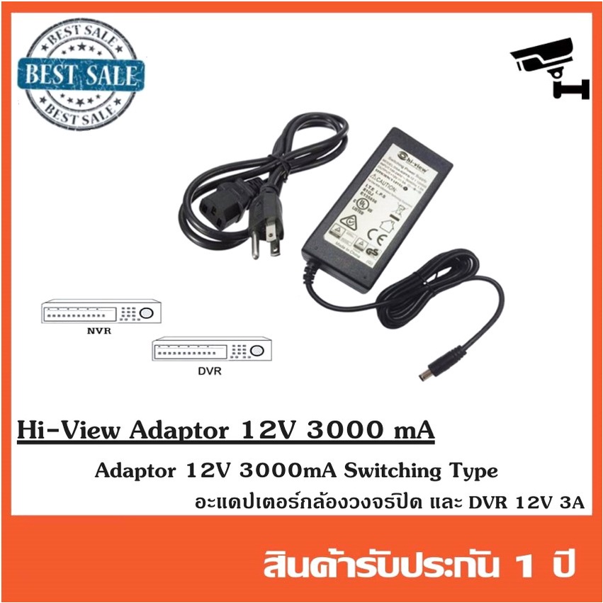 Hiview Adaptor DVR & CCTV 12V 3000 mA Switching Type อะแดปเตอร์ DVR และ กล้องวงจรปิด 12V 3A.
