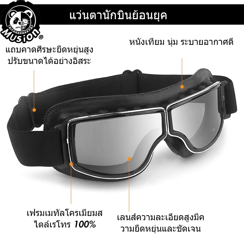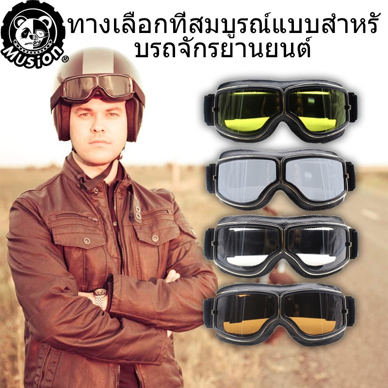 Musion แว่นตามอเตอร์ไซค์ กันแดด กันฝุ่น กันลม สวมทับแว่นสายตาได้ สไตล์วินเทจ