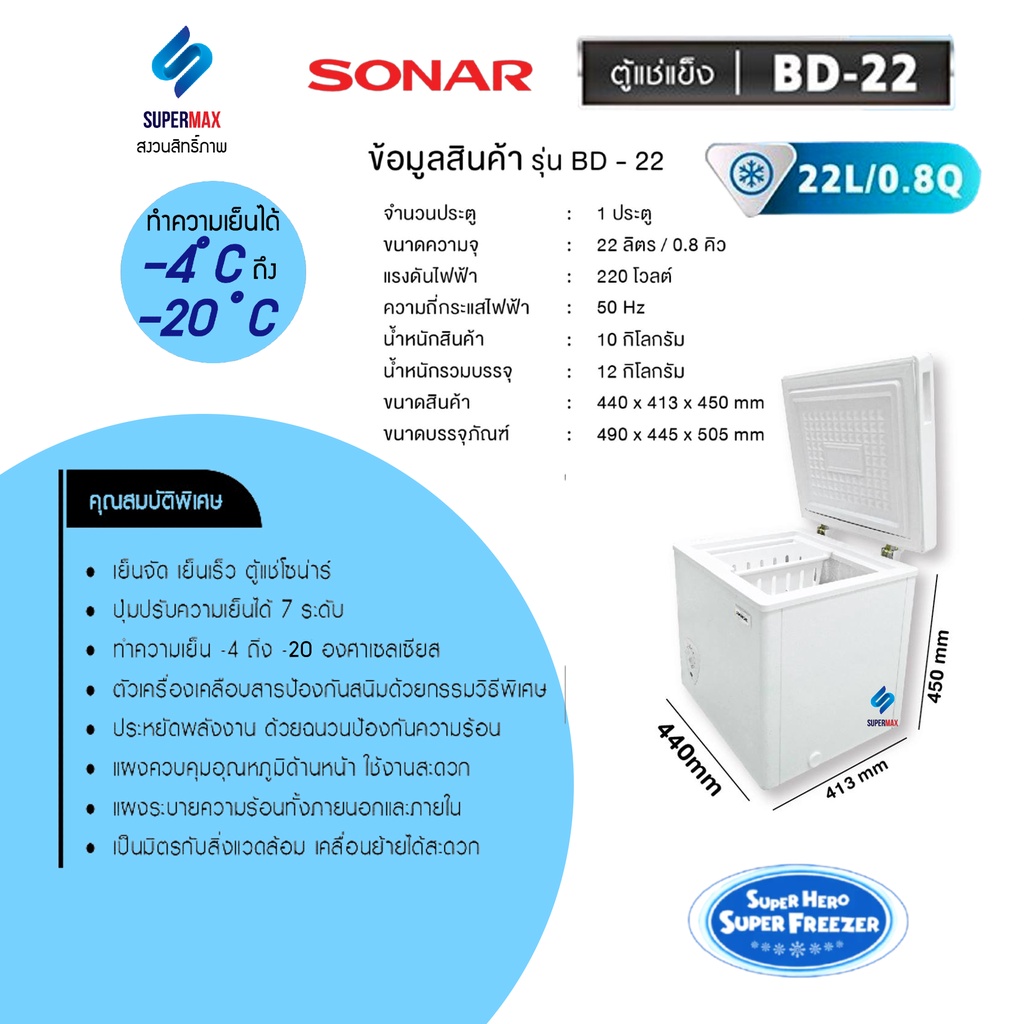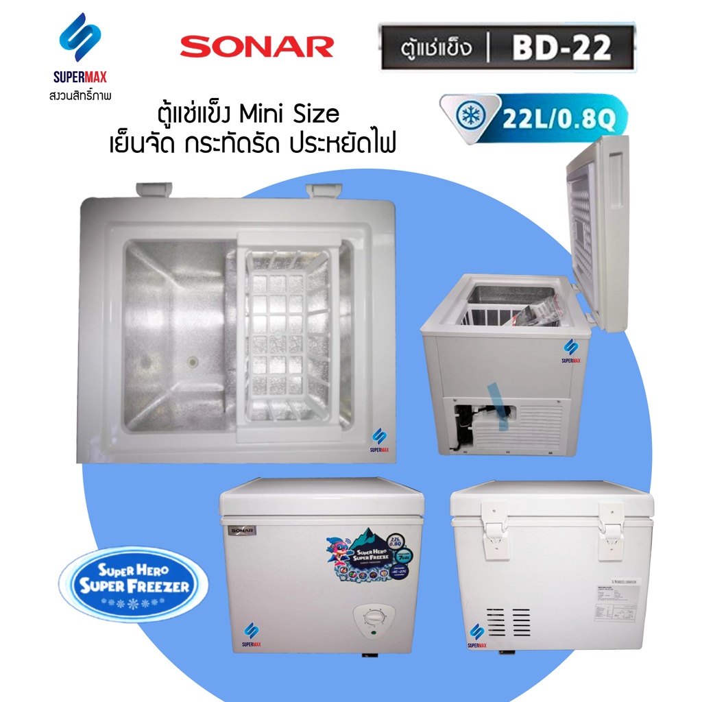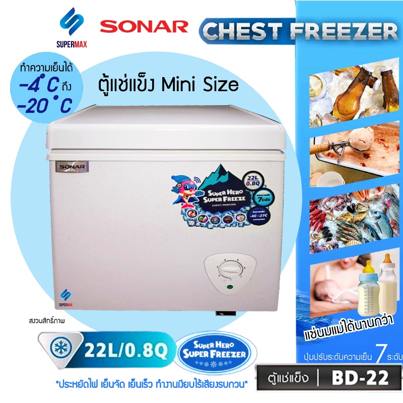 SONAR ตู้แช่แข็ง/แช่เย็น CHEST FREEZER ขนาด 22 ลิตร รุ่น BD-22 ประหยัดไฟ เย็นจัด เย็นเร็ว ทำงานเงียบไร้เสียงรบ