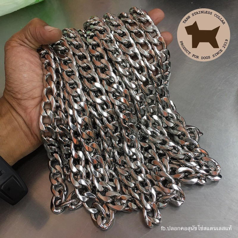 ปลอกคอสุนัข สร้อยคอสุนัข สร้อยเลส สแตนเลสแท้ กว้าง 15 มิลลิเมตร หนา 4 มิลลิเมตร