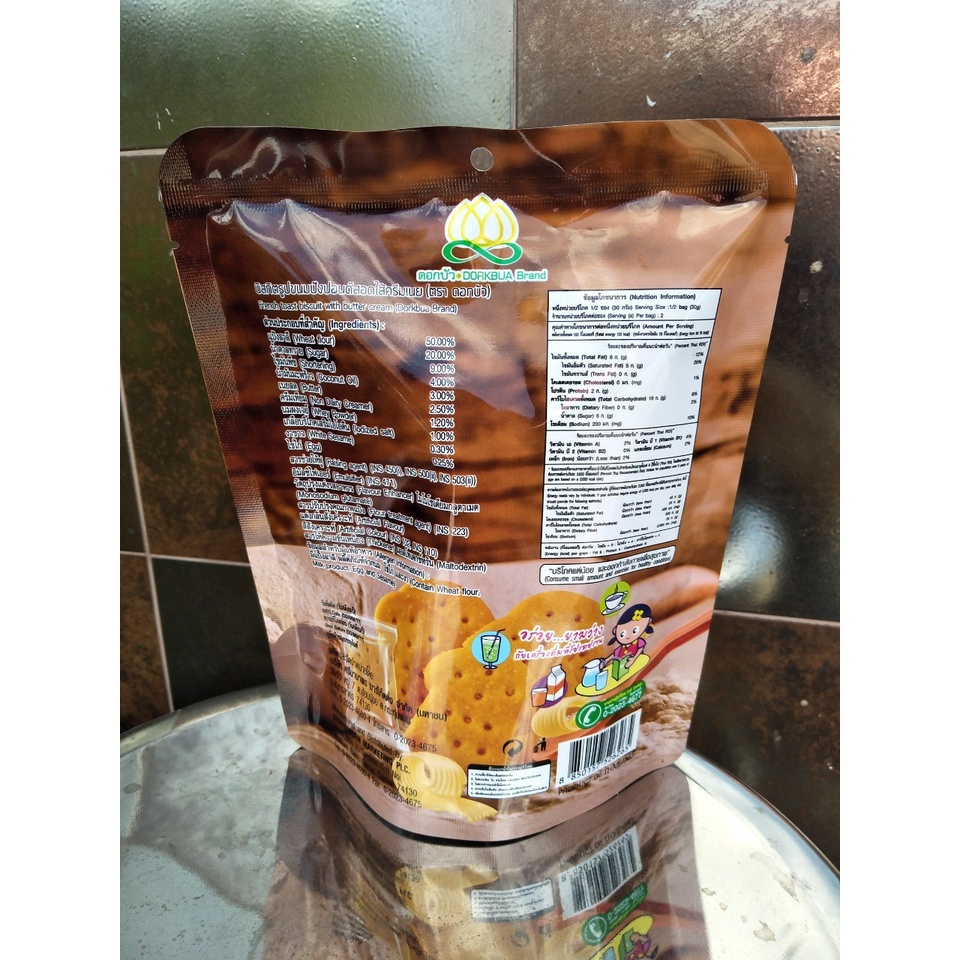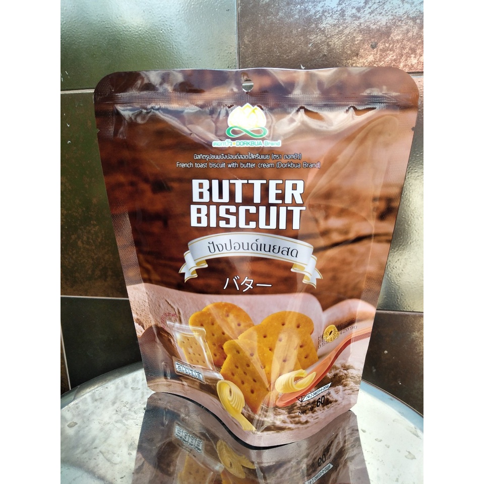 บิสกิตรูปขนมปังปอนด์สอดไส้ครีมเนย ตราดอกบัว 60 กรัม
