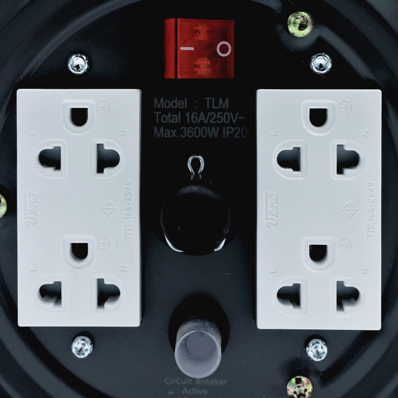 LUZINO ล้อเก็บสายไฟเหล็ก 4 ช่อง VCT3x1.5 16 A รุ่น TLM-1530 ขนาด 30 ม. สีเทา