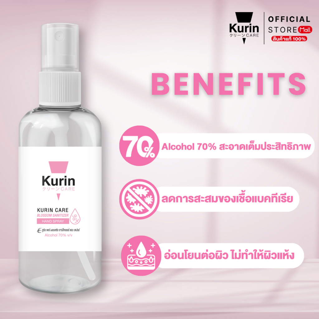Kurin Care alcohol hand spray สเปรย์แอลกอฮอล์ 70% ขนาดพกพา 35 ml. สูตร Blossom