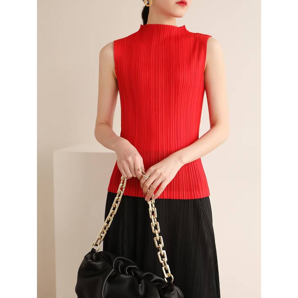 2MUAY BASIC รุ่น GJO7658 BASIC HIGH NECK PLEATED TOP เสื้ออัดพลีทงานคุณภาพ 22สี FREE SIZE