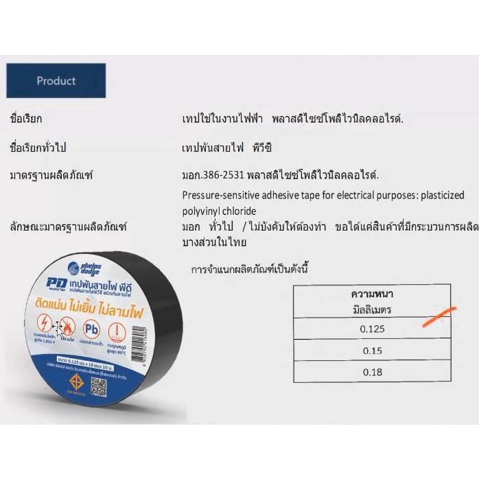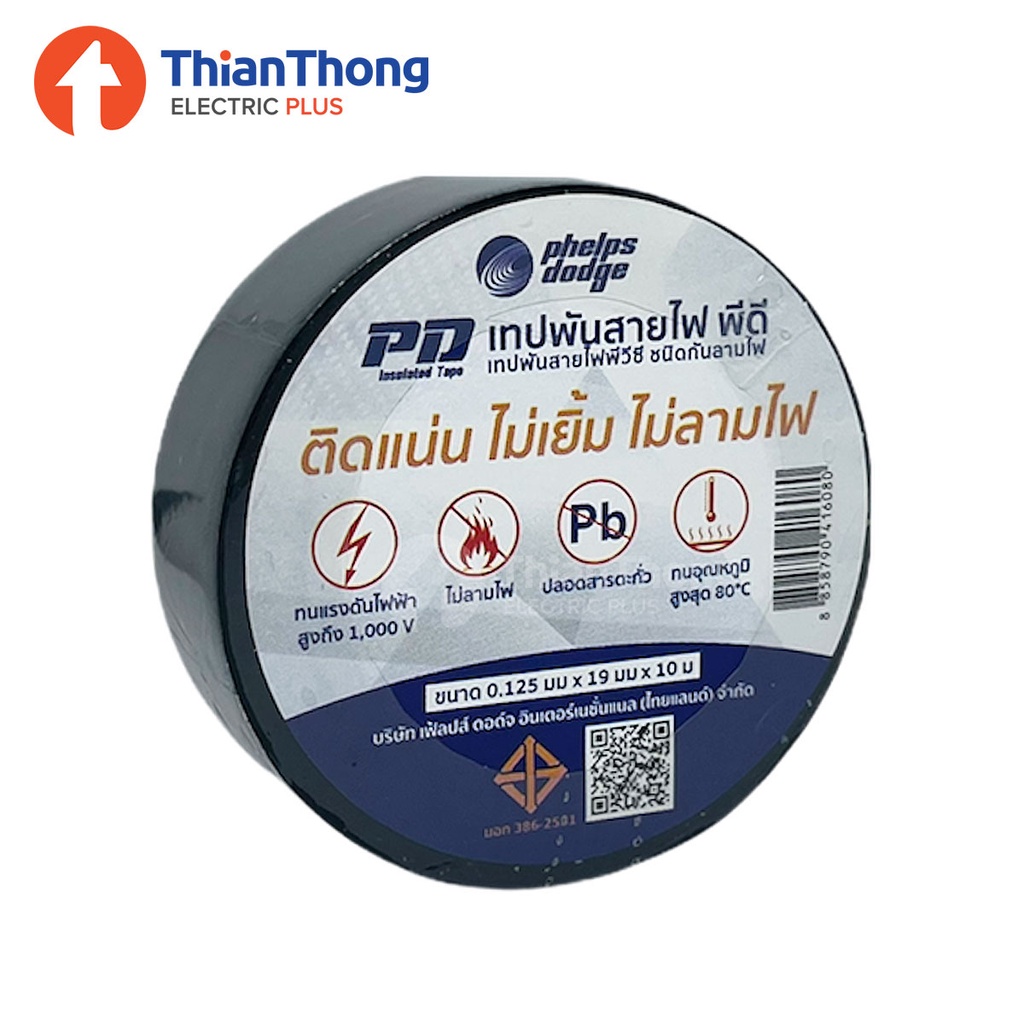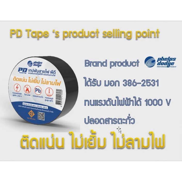 Phelps dodge เทปพันสายไฟ PD เฟ้ลปส์ดอด์จ สีดำ มีมอก. ยาว 10ม.