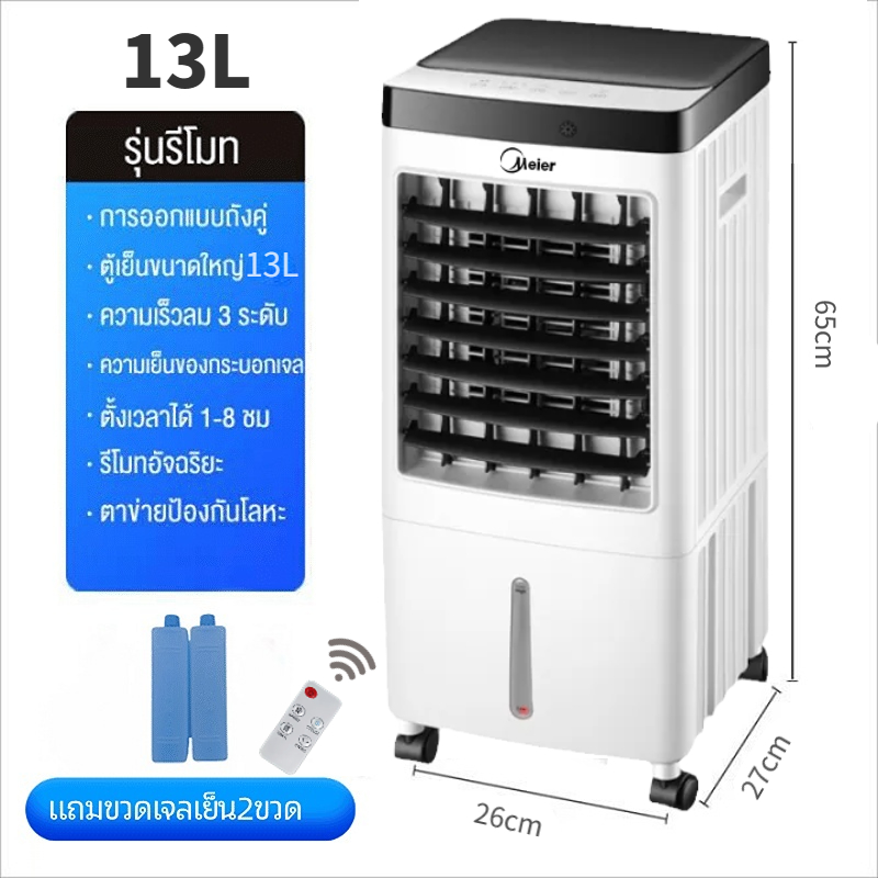 พัดลมไอเย็น พัดลมแอร์ แอร์ พัดลมเย็น Air cooler รับประกัน 2ปีจากMeier ระบบเคลื่อนที่4ล้อความจุ10ลิตร 13ลิตร