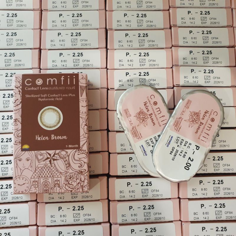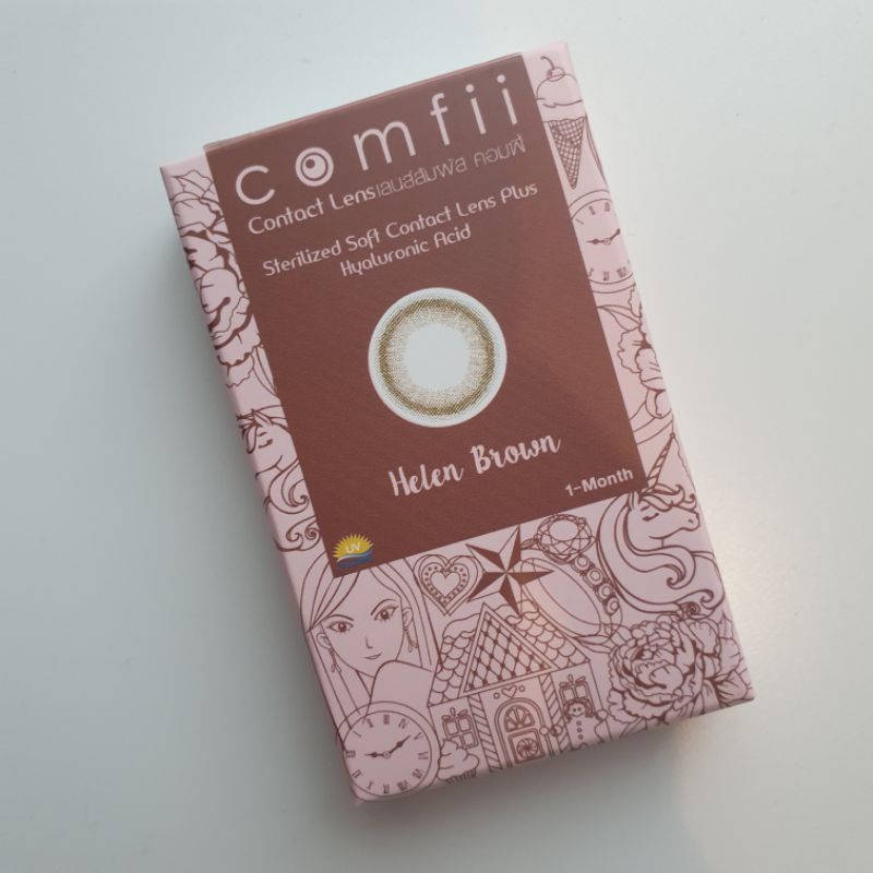 ซื้อ 1 แถม 1 [กด 1 คู่ ได้ 2 คู่] Comfii Contactlens คอนแทคเลนส์ Hyaluron รายเดือน Made in Korea รุ่น Helen Brown