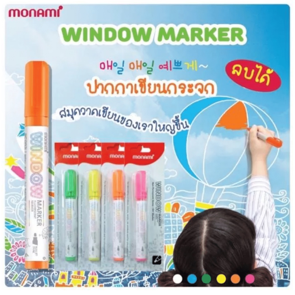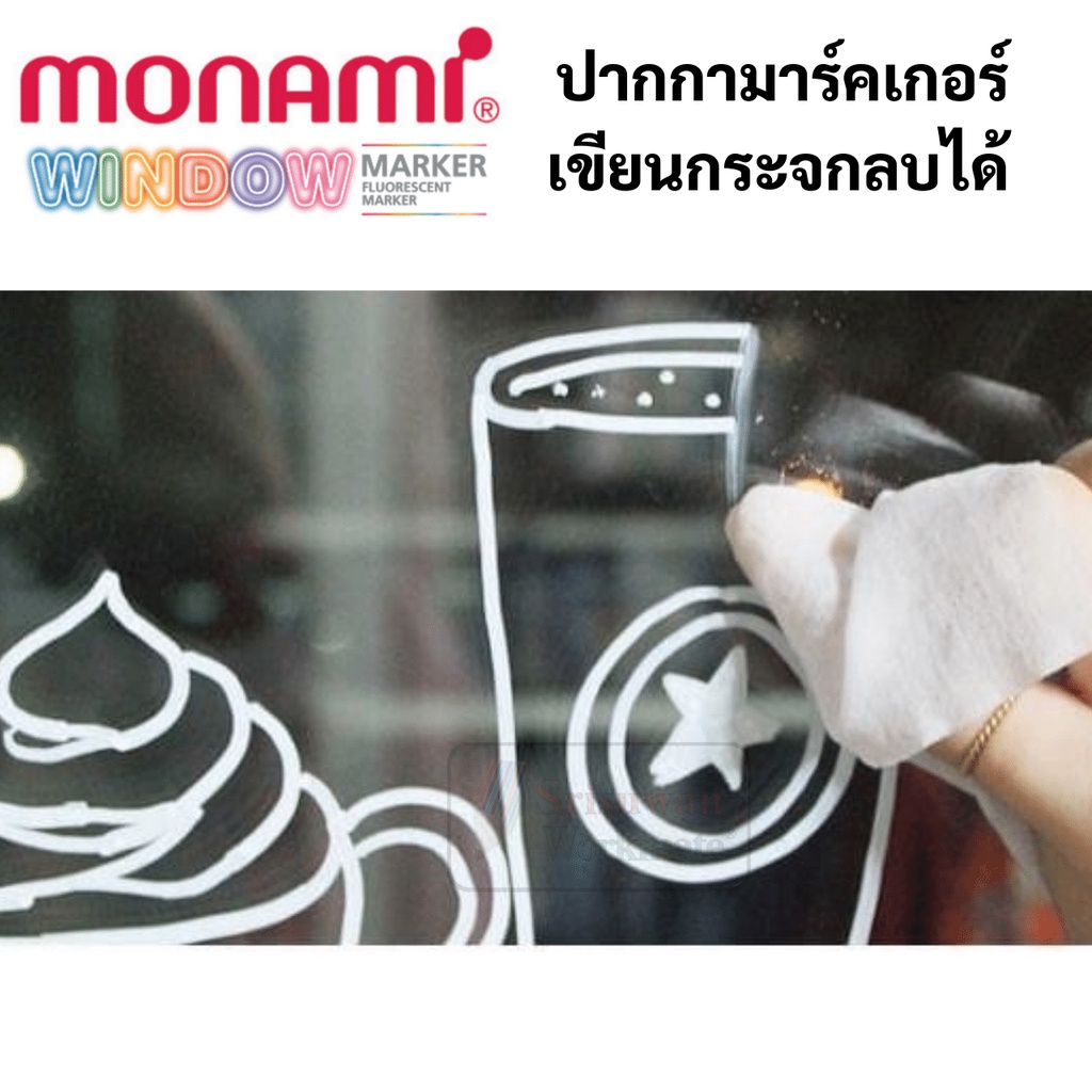 Monami ปากกาเขียนกระจก ลบออกได้ สีสด Monami Window Marker ปากกาเขียนกระจกลบได้ ปากกาเขียนตู้ปลา Fluorescent สีสะท้อนแสง