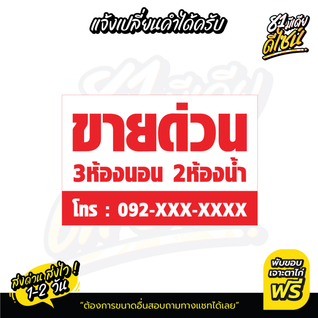 ป้ายขายด่วน ป้ายไวนิล เปลี่ยนข้อความได้ สีสด **ส่งไวมาก**