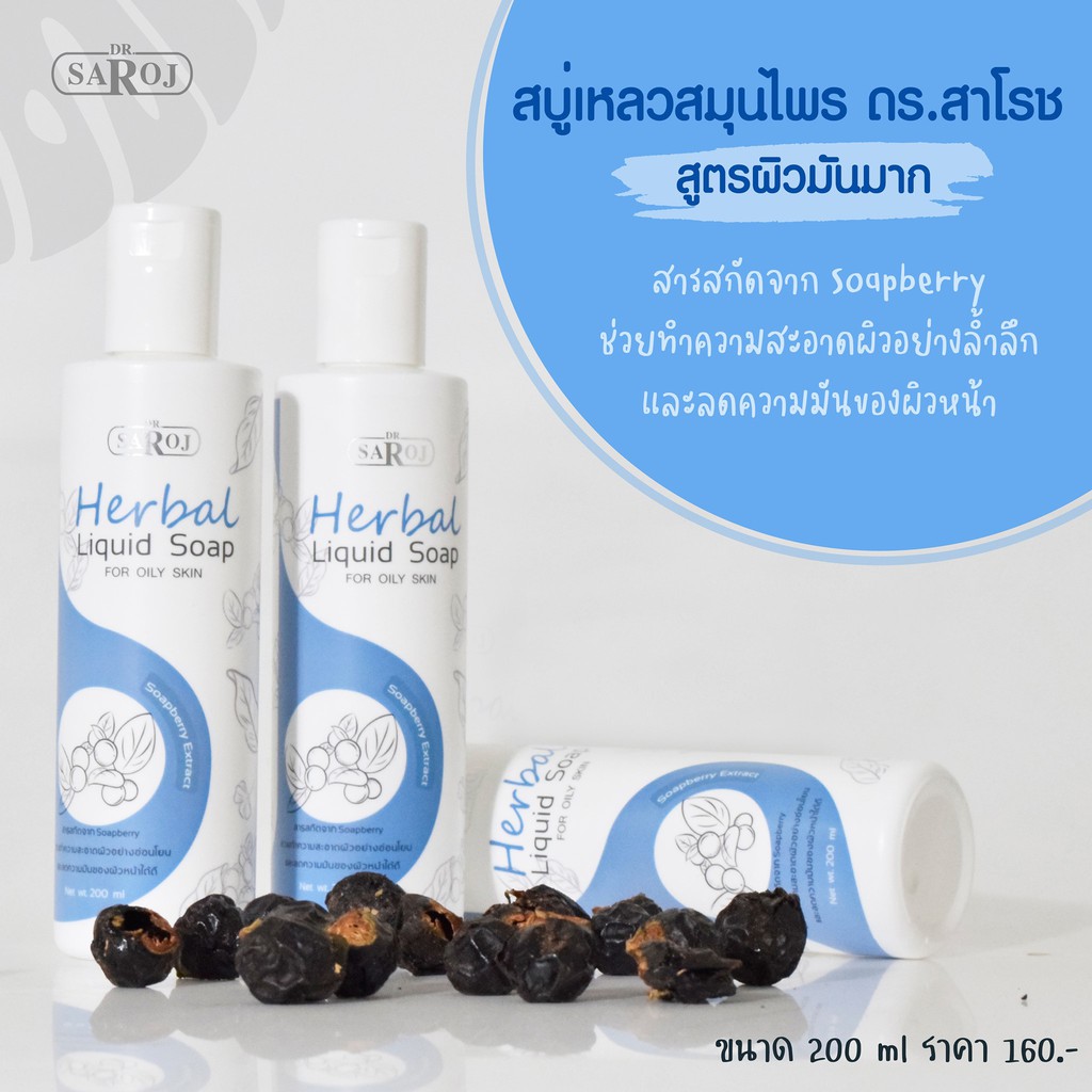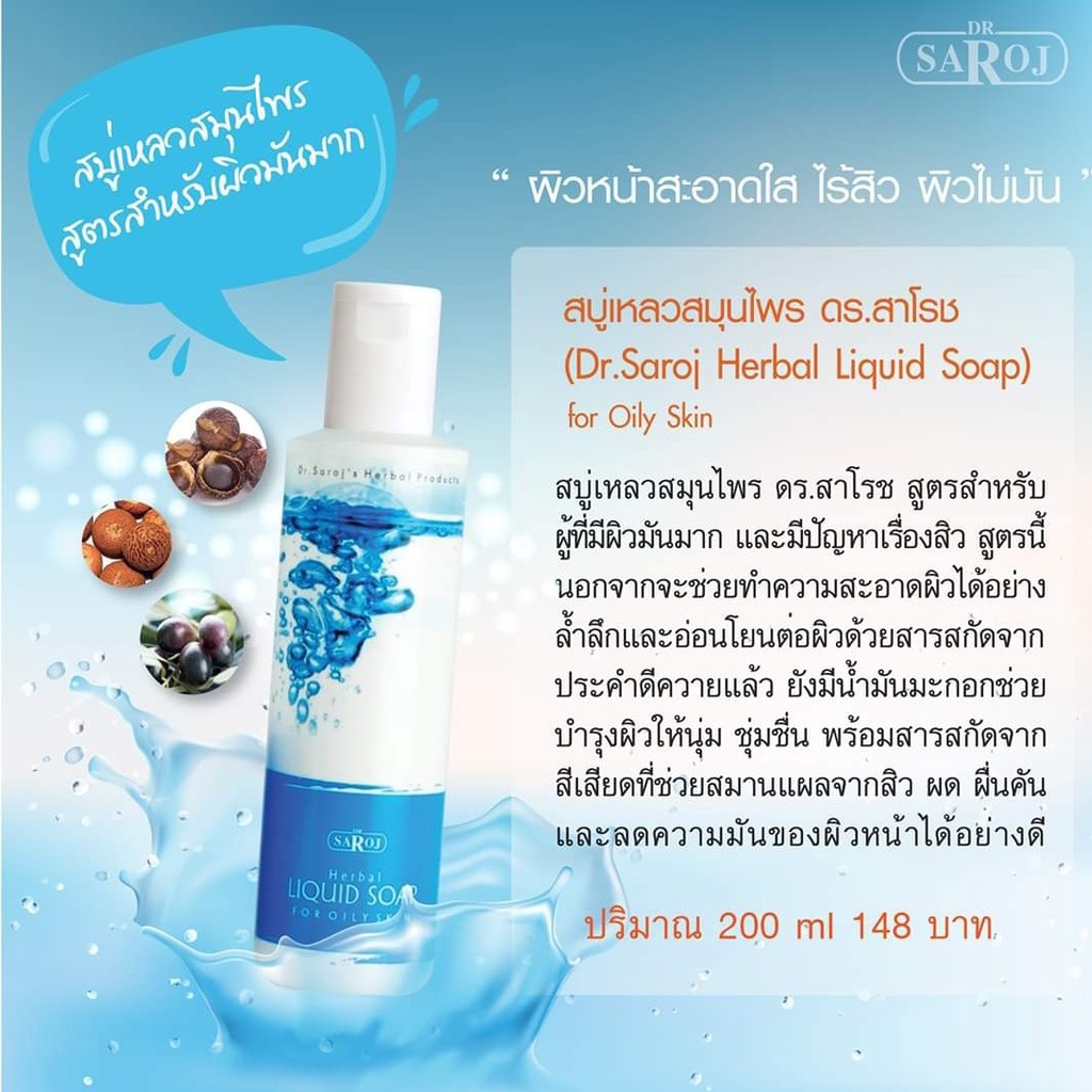 ดร.สาโรช สบู่เหลวผสมสมุนไพร สำหรับผิวมัน-มันมาก (ขวดสีฟ้า)
