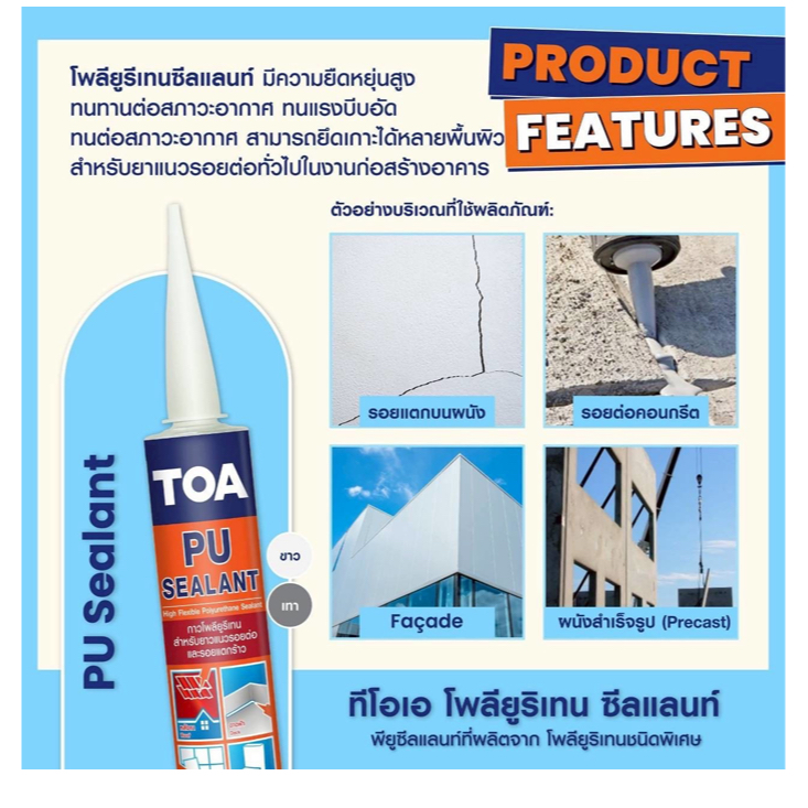 TOA PU Sealant ซิลิโคนโพลียูริเทรน 310ml. / 600ml. ทีโอเอ พียู |หลอด| TTR Store