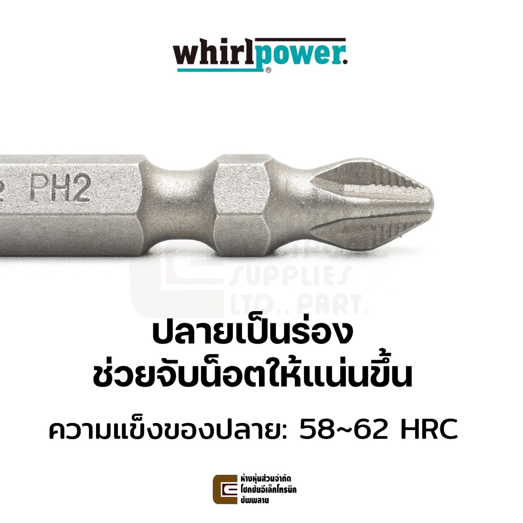 Whirlpower 9622-21 ดอกไขควง แฉก PH2 ยาว 65มม/100มม สองปลาย ปลายแม่เหล็ก Double End Screwdriver Bits (Made in Taiwan)