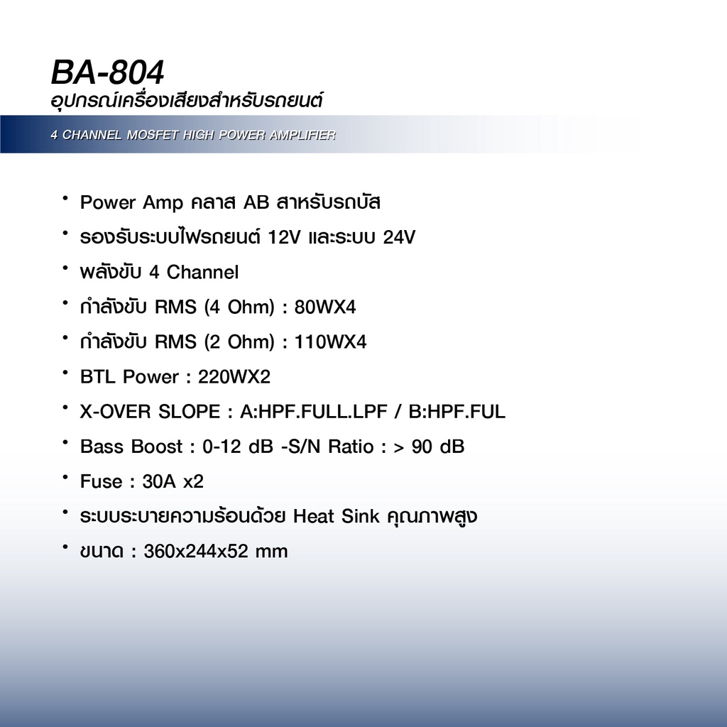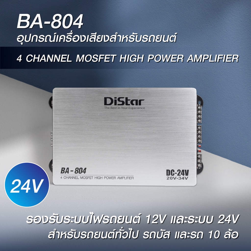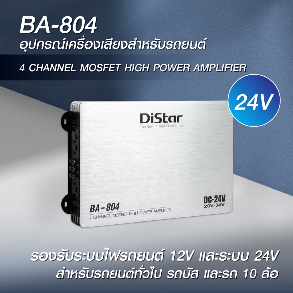 Distar เพาว์เวอร์แอมป์ติดรถยนต์รุ่น BA-804 คลาส AB สำหรับรถยนต์ทั่วไปและรถบัสรถบรรทุกขนาดใหญ่ไม่ต้องแปลงไฟ เสียงดีมาก