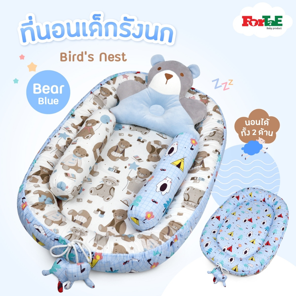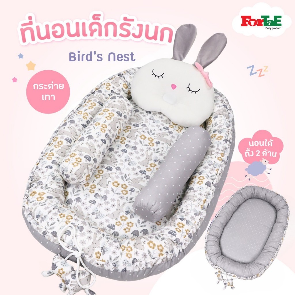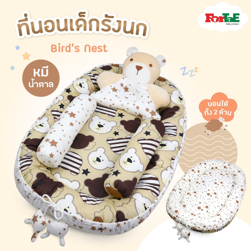 Fortae(ฟอร์เต้) ที่นอนเด็กรังนกขอบตั้ง นอนได้2ด้าน ที่นอนเด็กแรกเกิด Cotton100% พร้อมหมอนข้าง2ใบ