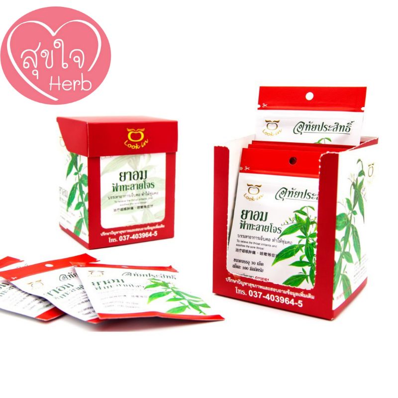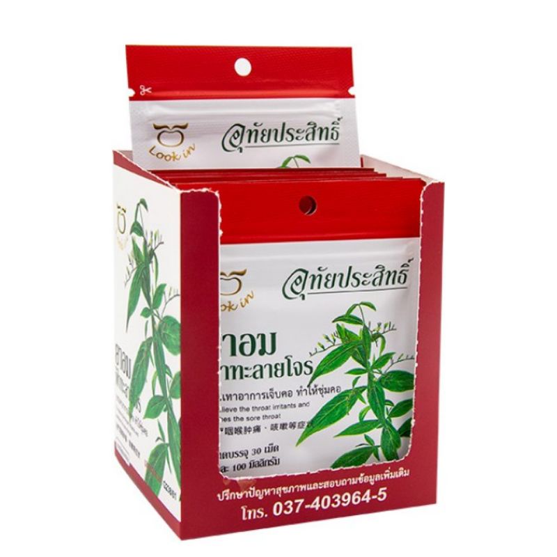 ยาอมฟ้าทะลายโจร แก้เจ็บคอ ช่วยให้ชุ่มคอ อุทัยประสิทธิ์ บรรจุซองละ 30 เม็ด