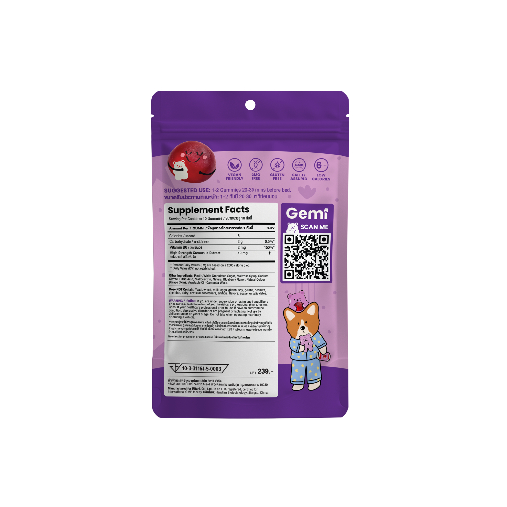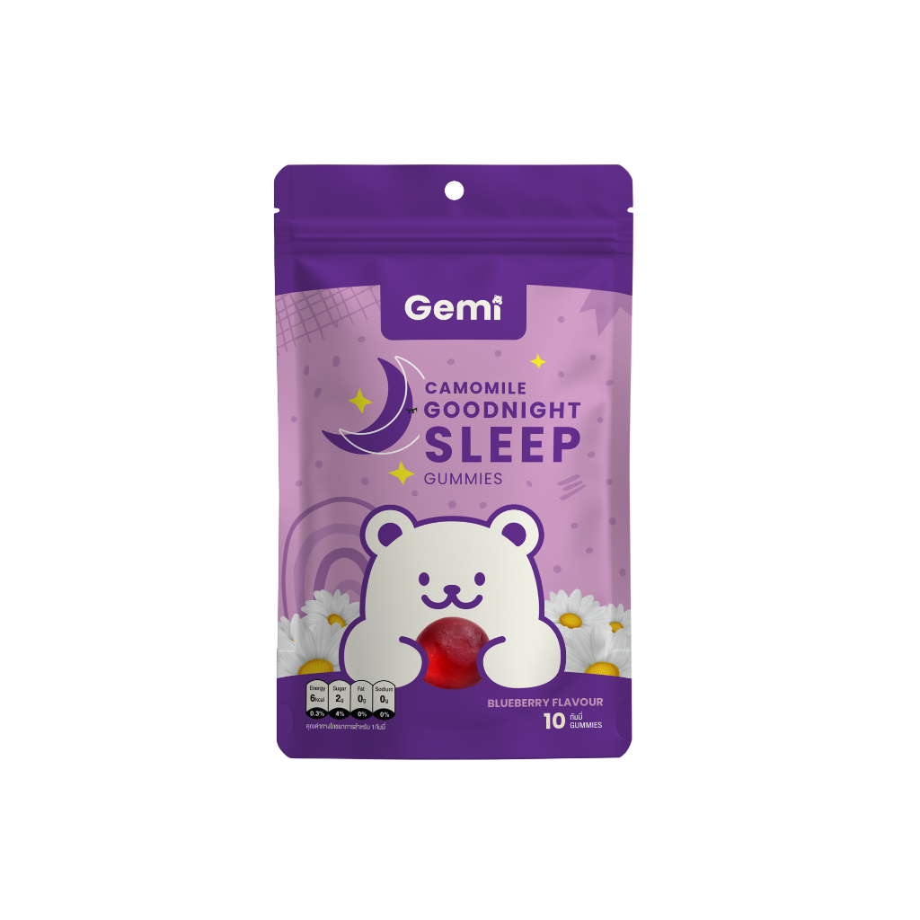 Gemi เจมมี่ กู๊ดไนท์สลีพกัมมี่ แบบซอง 10 เม็ด / Gemi Goodnight Sleep Gummy Small pack 10 gummies / GemiGummi