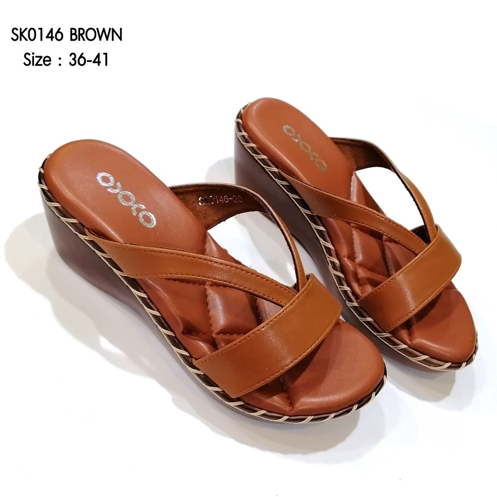 PRETTYCOMFORT รองเท้าแตะ เพื่อสุขภาพ หน้าสวม ส้นเตารีดเย็บเชือก สูง2นิ้ว นิ่มมาก น้ำหนักเบา SK0146