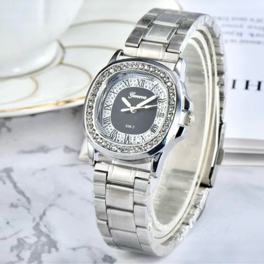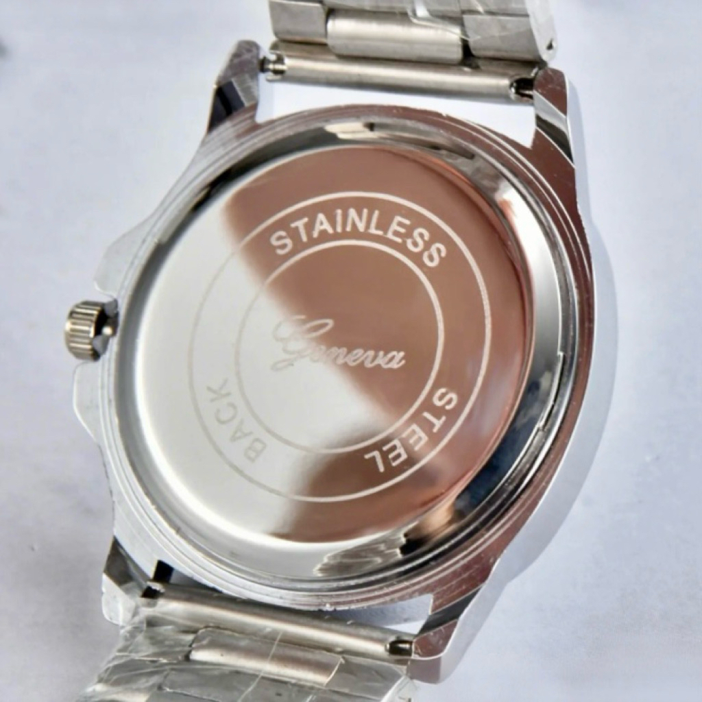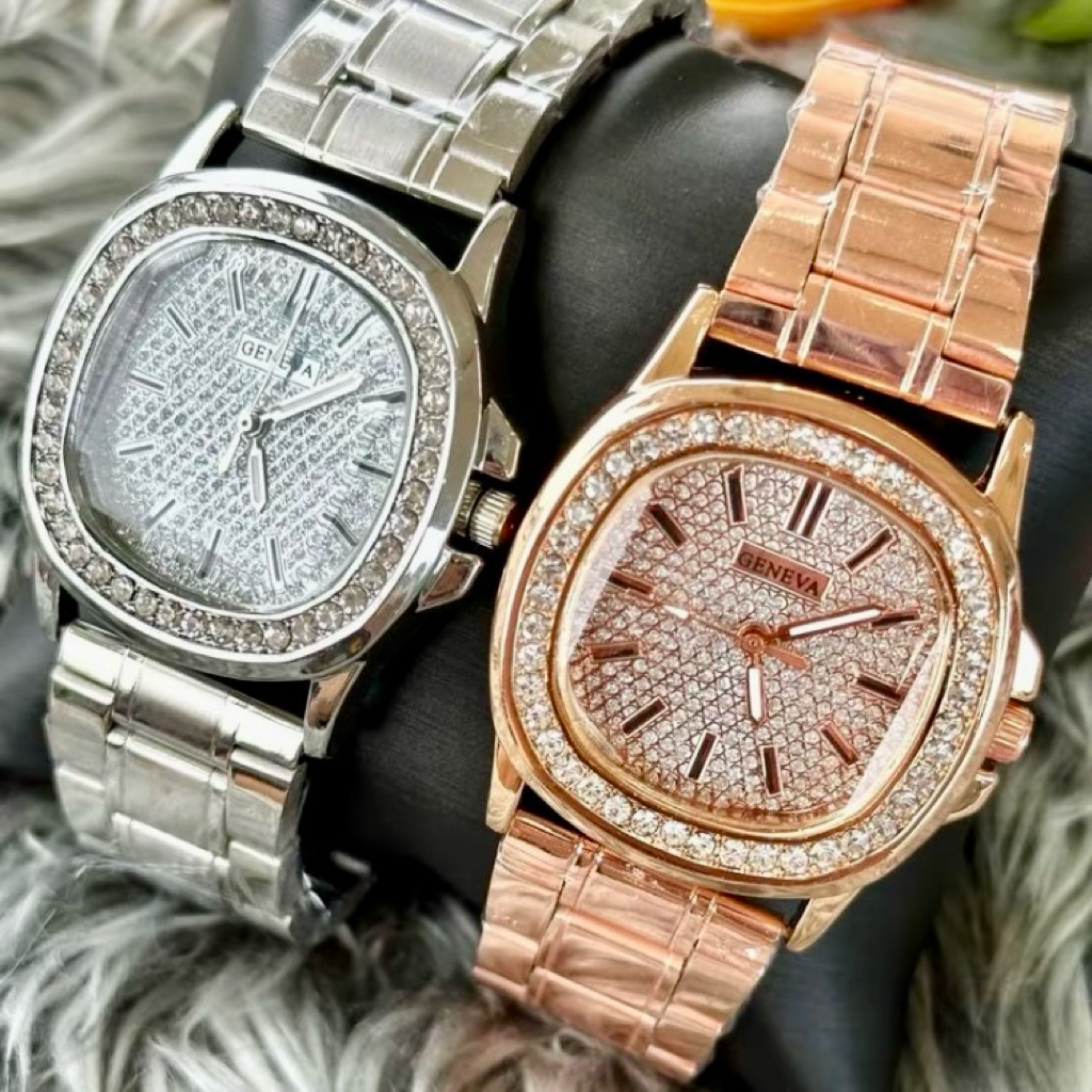 นาฬิกาข้อมือผู้หญิง Geneva เเบรนด์เเท้หน้าปาเต๊ะสเเตนเลสมีหลายเเบบให้เลือกสเเตนเลสหนาอยางดี