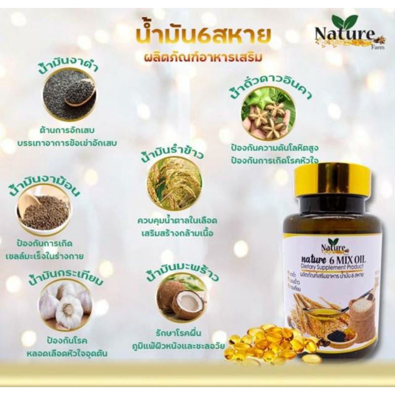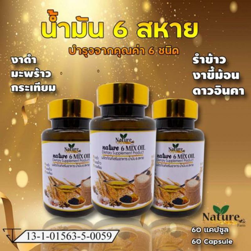 [ของแท้ พร้อมส่ง] น้ำมันหกสหาย(มะพร้าว+งาดำ+กระเทียม+รำข้าว+งาขี้ม้อน+ดาวอินคา)สกัดเย็น 60 แคปซูล