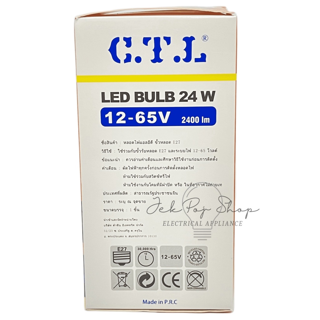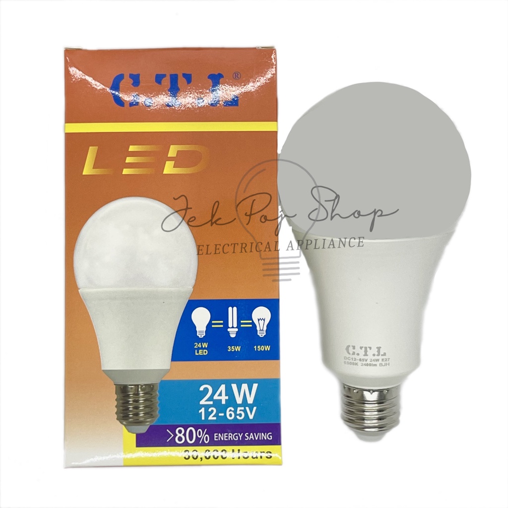 [ใช้กับแบตเตอรี่] หลอดไฟ LED หลอดประหยัดไฟ ขั้วเกลียว E27 12V-24V-65V 24W ยี่ห้อ CTL แสงสีขาว Daylight
