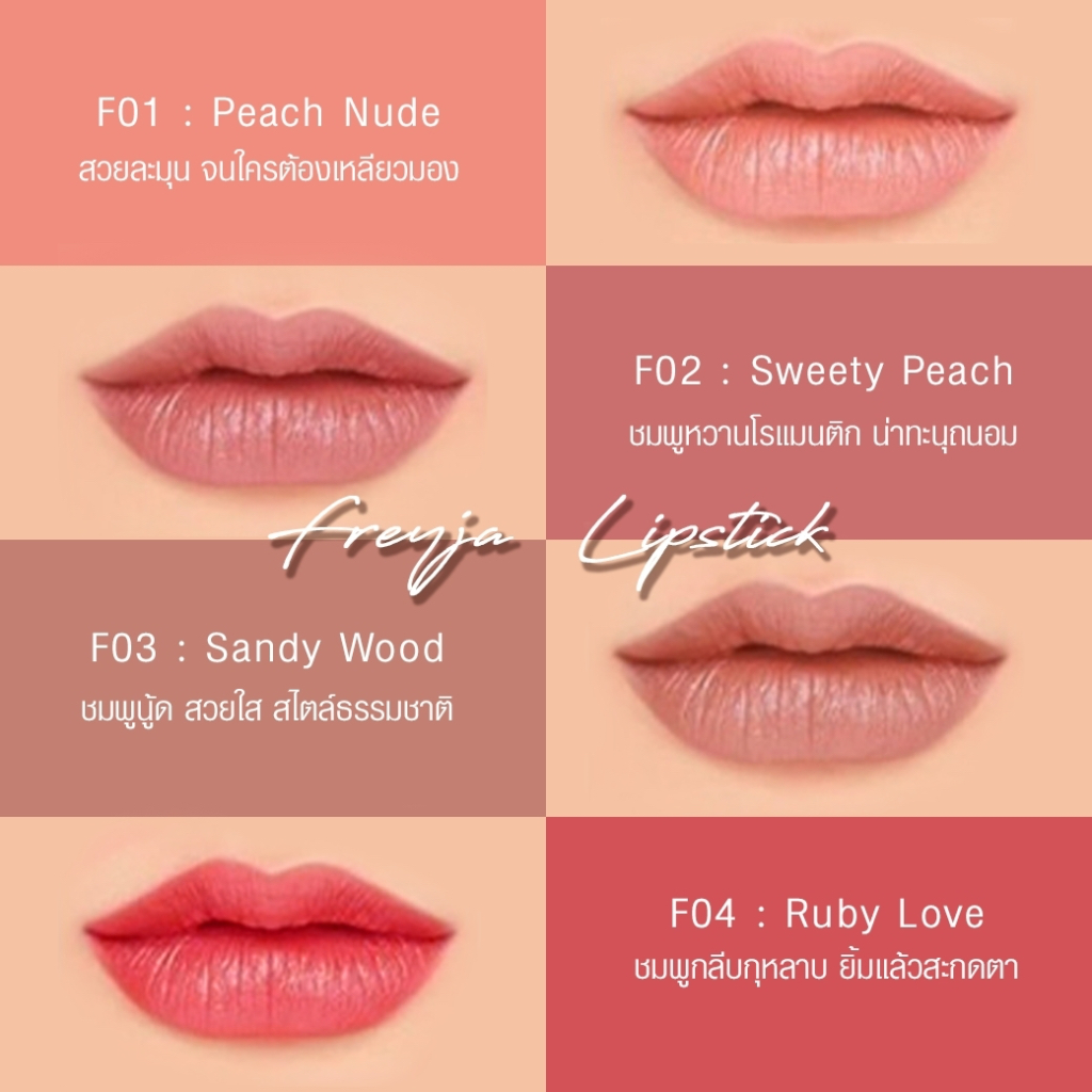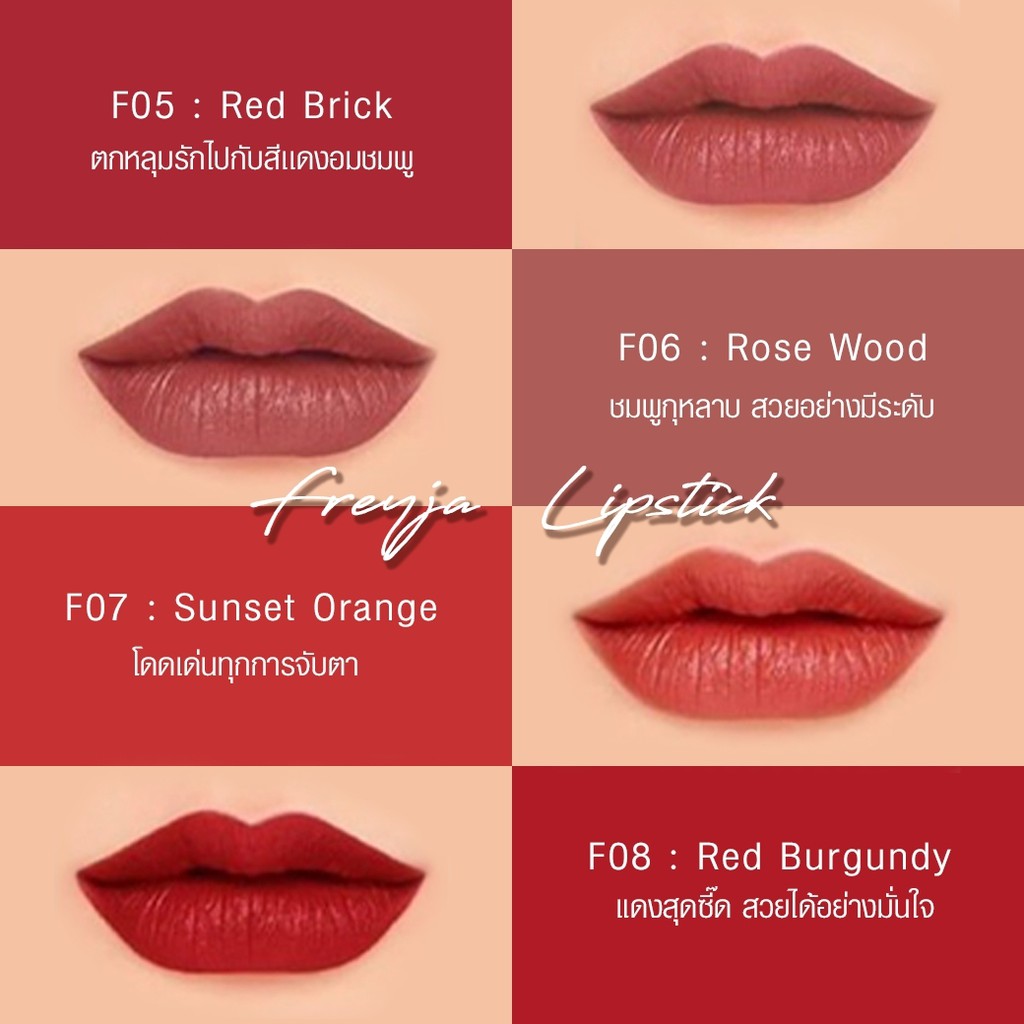 Freyja Matte Lipstick แมทลิปสติก สีสวยสดชัดติดทน กลบสีปากมิด ไม่ตกร่องระหว่างวัน เม็ดสีจากประเทศฝรั่งเศส