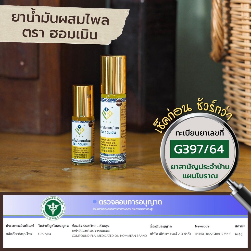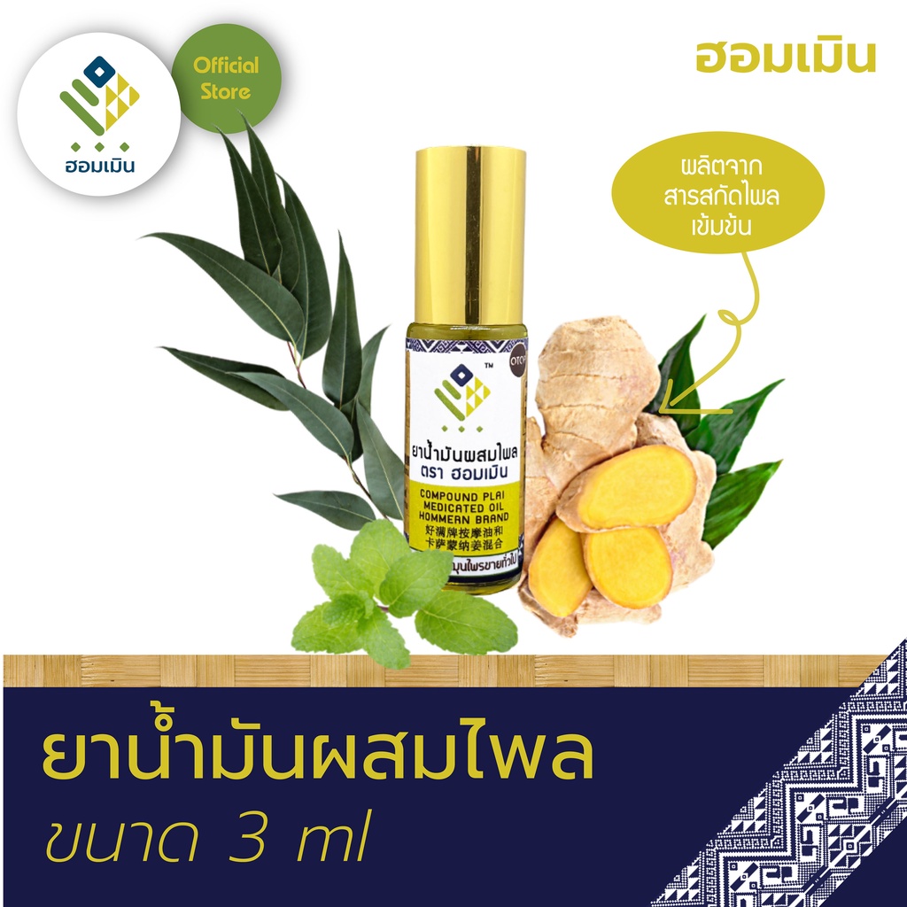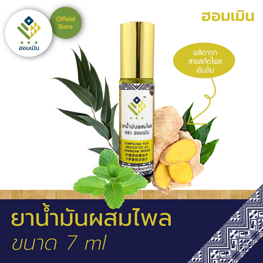 ยาน้ำมันผสมไพล ตราฮอมเมิน (Compound Plai Medicated Oil) น้ำมันนวดแก้ปวดเมื่อยเคล็ดขัดยอก หลับสบาย