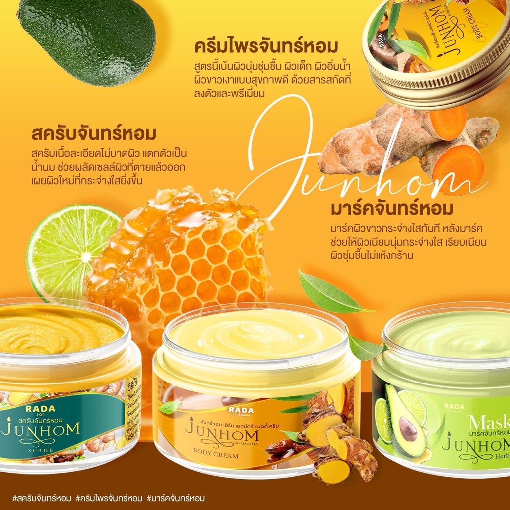 RADA JUNHOM Scrub/Mask/Body Cream รดา จันทร์หอม สครับจันทร์หอม/มาร์คจันทร์หอม/ไพรจันทร์หอม ครีม