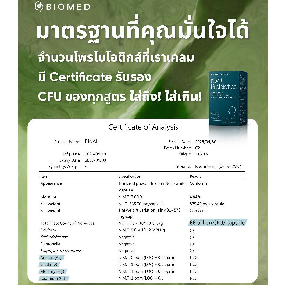 BioAll แคปซูลโพรไบโอติกส์Medical Grade Probiotic BioMed โพรไบโอติก