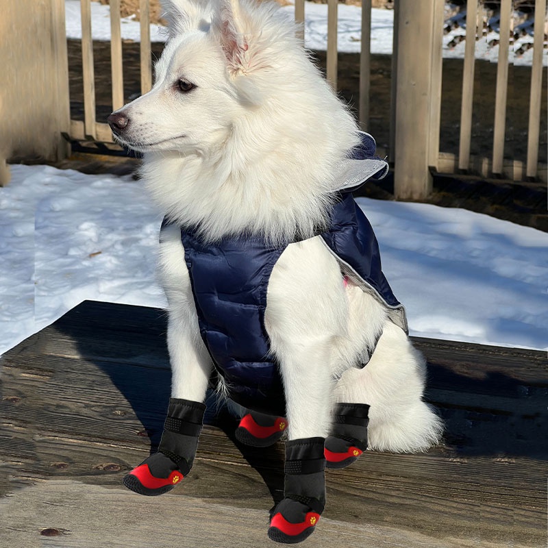 HamshMoc รองเท้าสุนัขกันน้ํารองเท้าสุนัขสะท้อนแสง 4 ชิ้น Anti Slip สบาย Breathable ทนทานกลางแจ้ง Paw Protectors สําหรับสุนัข