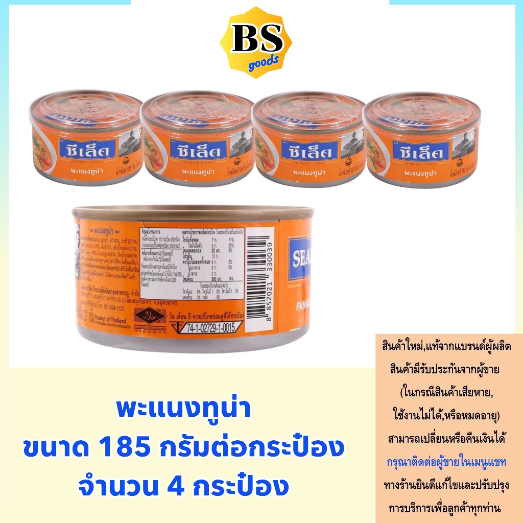 BSgoods 4x(185g) sealect tuna panang ซีเล็ค พะแนงทูน่า / แพนง ทูน่ากระป๋อง อาหารแห้ง สินค้ามีฮาลาล halal