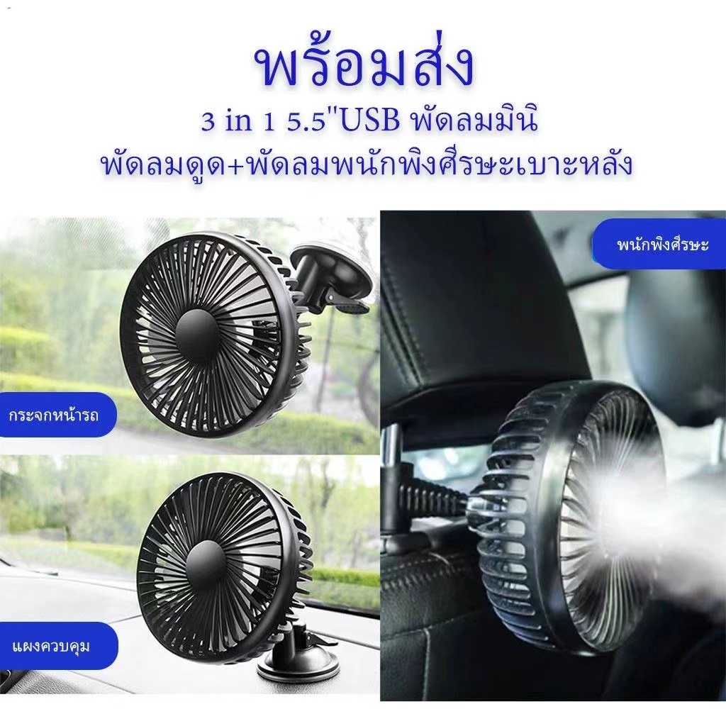 พัดลมติดรถยนต์ 12-24v ขนาดมินิ 5.5 นิ้ว เสียบสาย USB