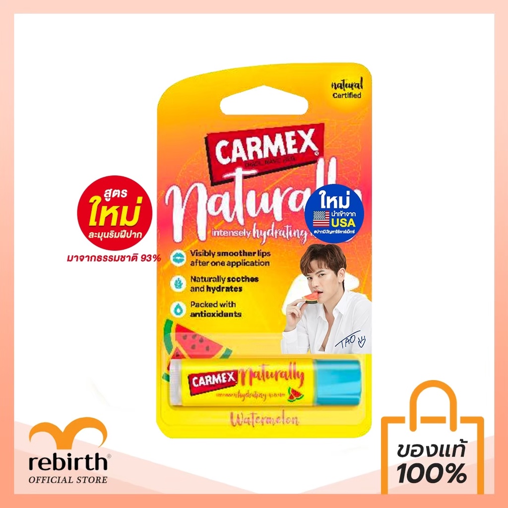 Carmex Naturally Watermelon กลิ่นแตงโม อ่อนโยน มีส่วนผสมจากธรรมชาติกว่า 93%