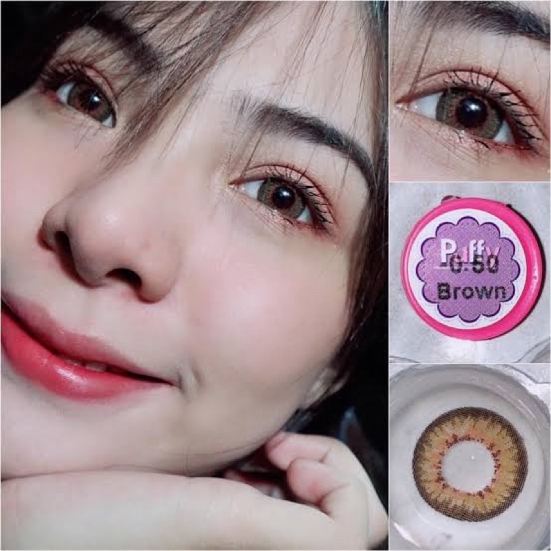 คอนแทคเลนส์ Puffy 3 tone Gray / Brown - Pitchy Lens / Pretty Doll ขนาดตาโต มีสายตาสั้นถึง -7.00