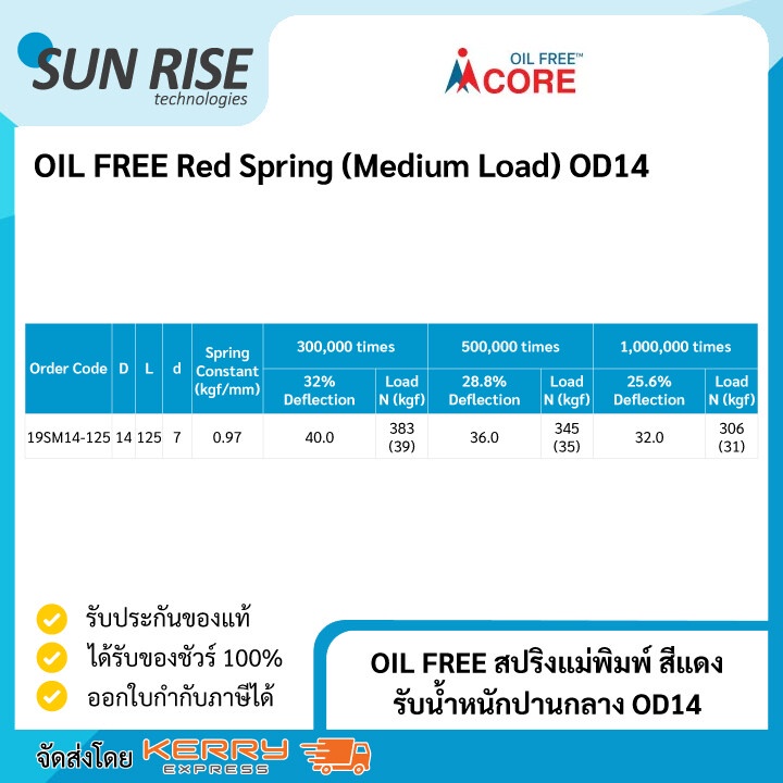 OIL FREE สปริงแม่พิมพ์ สีแดง รับน้ำหนักปานกลาง OD14 Red Spring (Medium Load) OD14