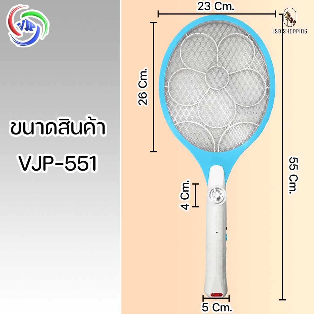VJP-551 ไม้ตียุงไฟฟ้า ไม้ช็อตยุง ชาร์จไฟบ้าน ไม้ตียุง ไฟแรง ที่ตียุง ขาเสียบชาร์จในตัว คุณภาพสูง แตะปุ๊ปช๊อตปั๊ป