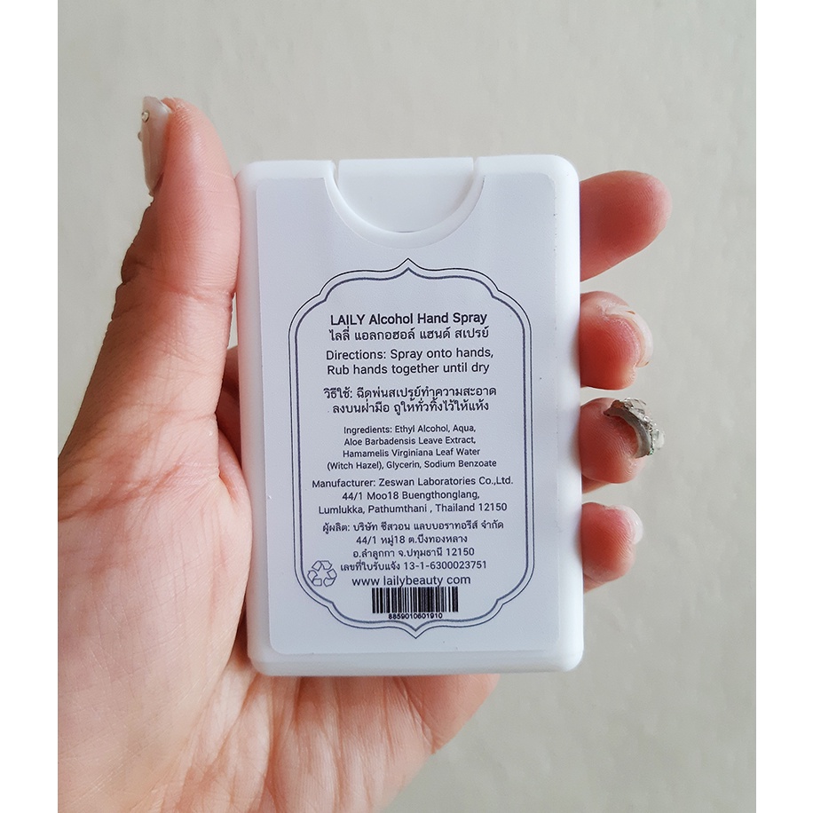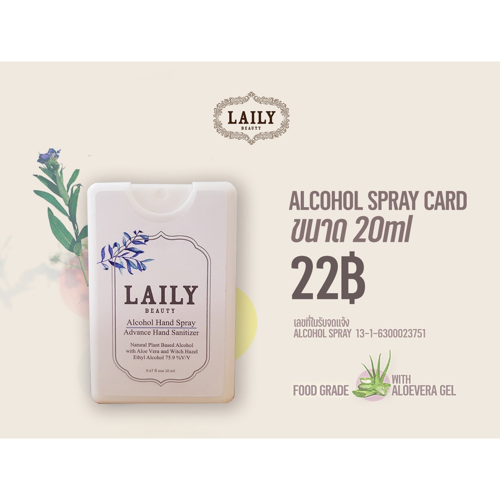 LAILY Alcohol Spray Card 20ml Food Grade 75.9% แอลกอฮอล์สเปรย์การ์ดขนาด 20ml ฟู้ดเกรดแท้ ผสมอะโลเวร่า บำรุงผิว กลิ่นหอม