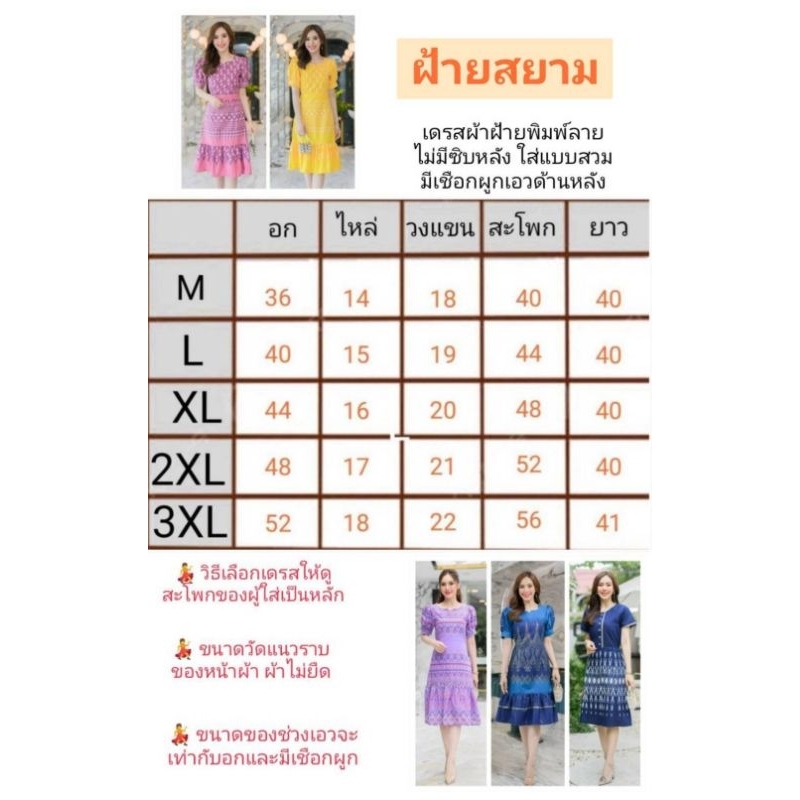 เดรสผ้าฝ้ายพิมพ์ลายไทยเชียงใหม่ มีสายผูกเอว ไม่อัดกาว ไม่มีซิบ