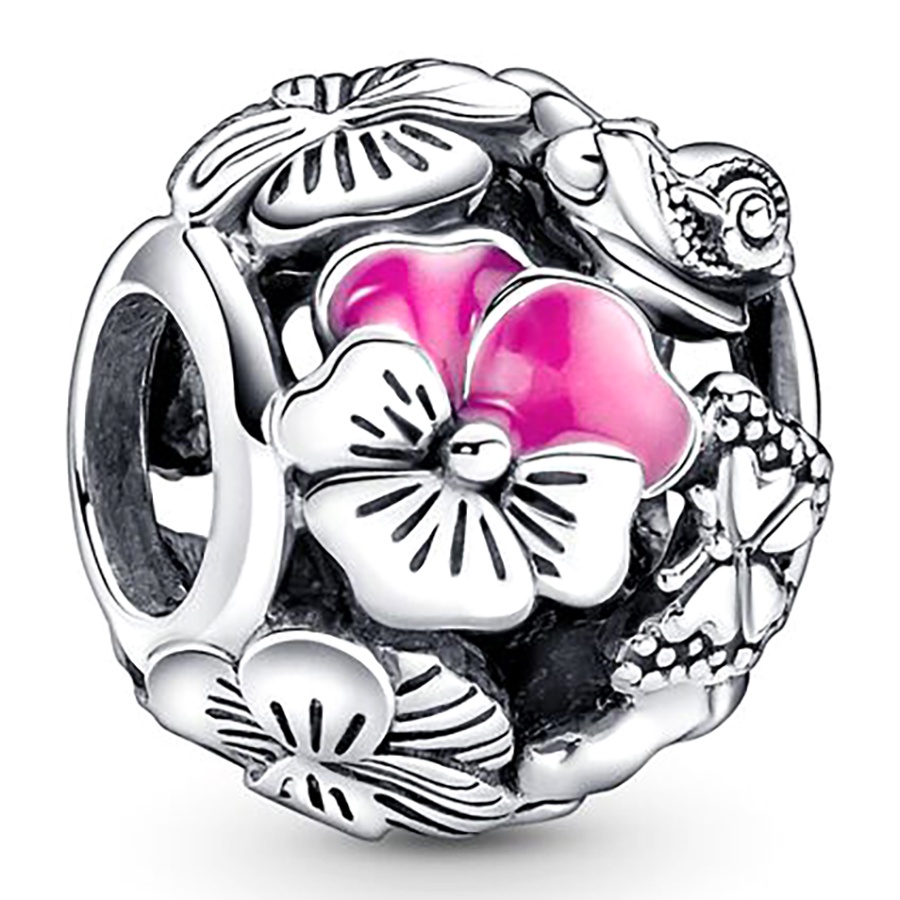 Dinglly ลูกปัดคริสตัล รูปผีเสื้อ ดอกไม้ สีชมพู สีเงิน สําหรับทําเครื่องประดับ DIY