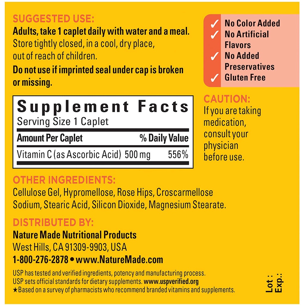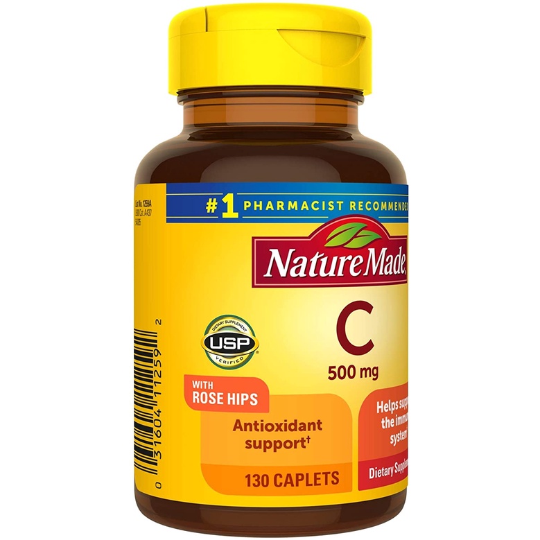 [ของแท้ 100%] NATURE MADE VITAMIN C 500 mg WITH ROSE HIP 130 CAPLETS