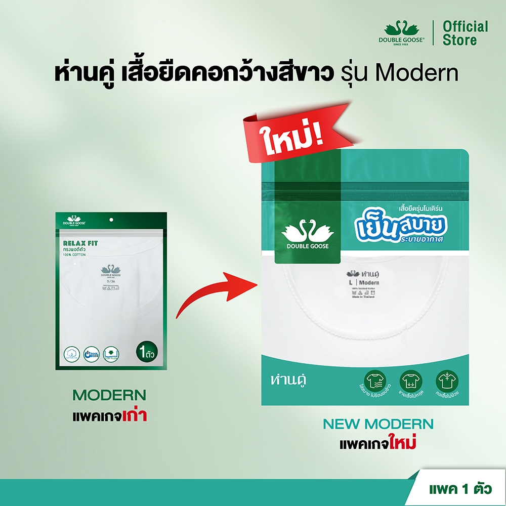 ห่านคู่ เสื้อยืดคอกว้าง New Modern สีขาว ไร้ตะเข็บข้าง แพค 1 ตัว